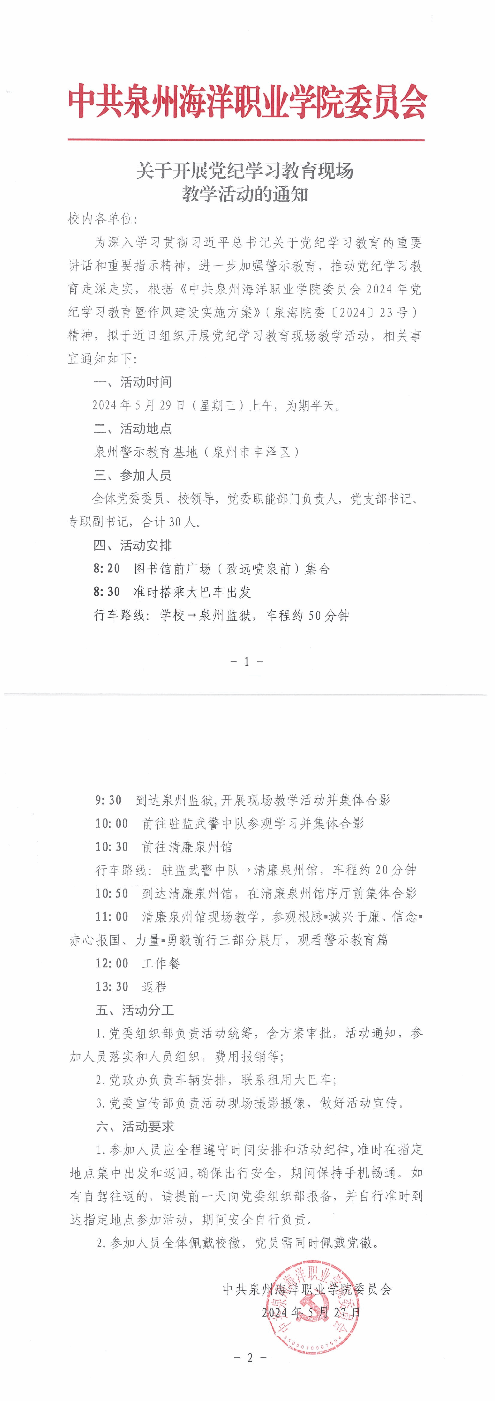 关于开展党纪学习教育现场教学活动的通知