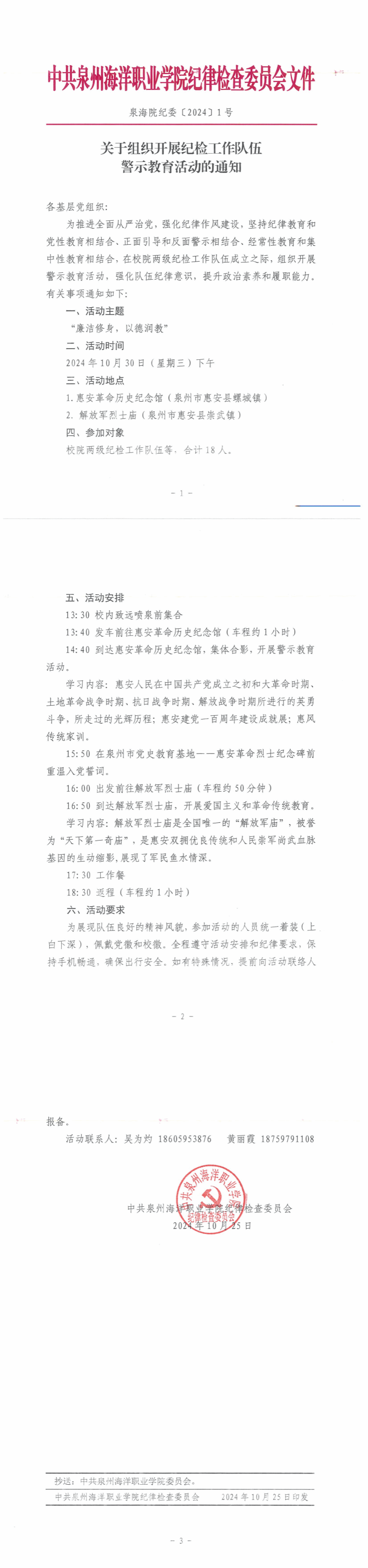 泉海院纪委〔2024〕1号 关于组织开展纪检工作队伍警示教育活动的通知
