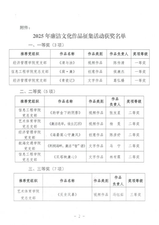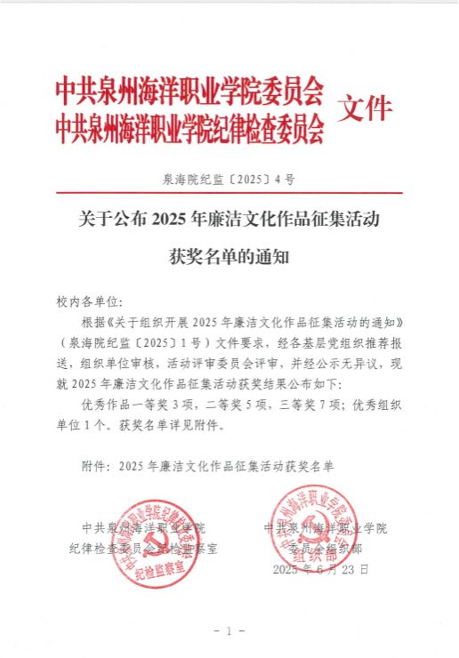 泉海院纪监〔2025〕4号 关于公布2025年廉洁文化作品征集活动获奖名单的通知