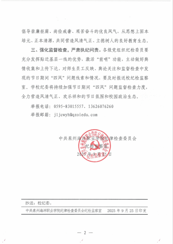 泉海院纪监〔2025〕7号 关于严明2025年国庆、中秋双节期间廉洁纪律的通知