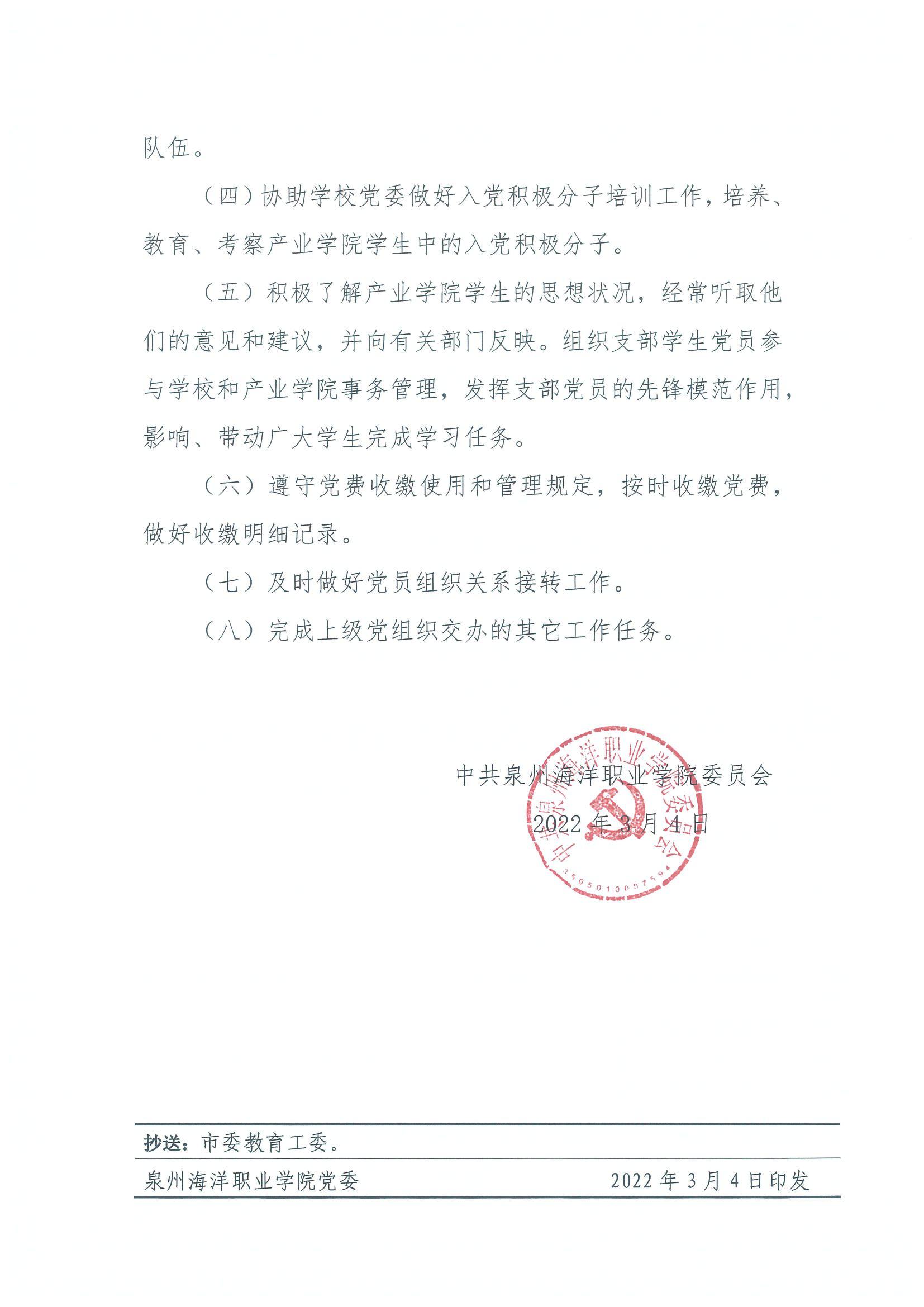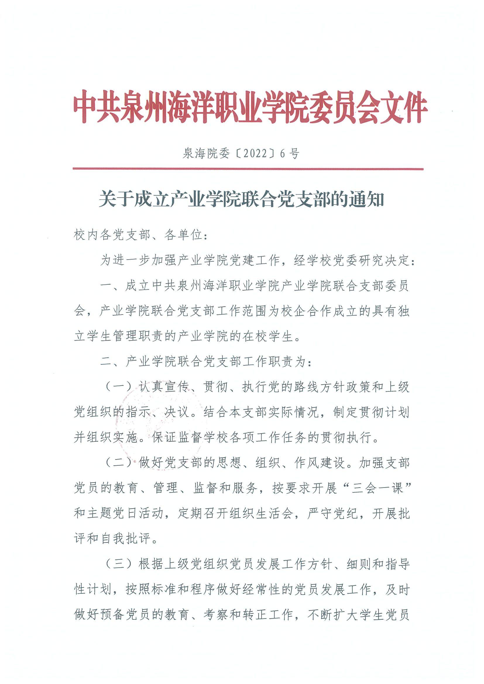 泉海院委〔2022〕6号 关于成立产业学院联合党支部的通知