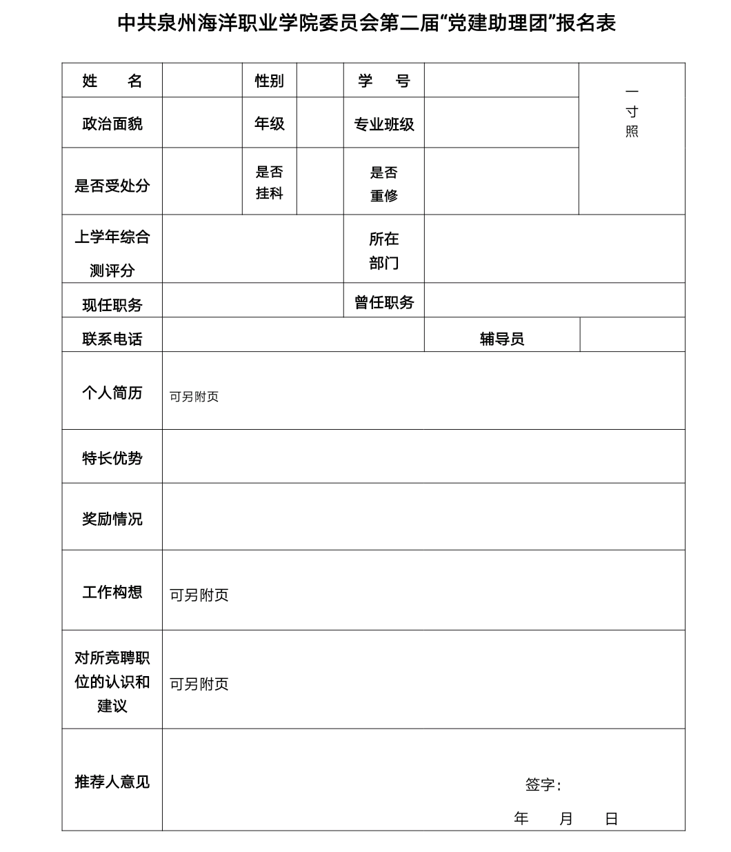 附件二:中共泉州海洋职业学院委员会第二届党建助理团报名表