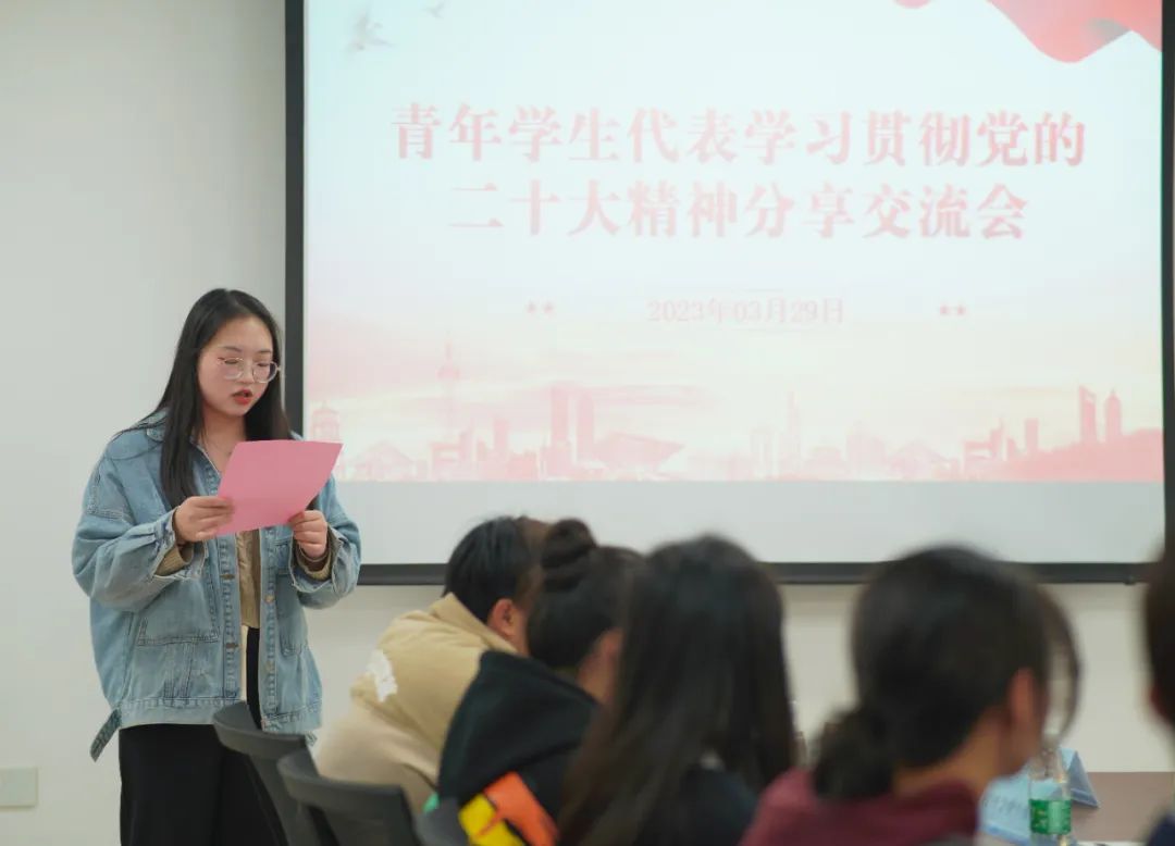 为积极营造学习宣传贯彻党的二十大精神浓厚氛围,发挥大学生骨干在培育和践行社会主义核心价值观中的示范带动作用,做好党的二十大精神青年化阐释,近日我校于图书馆西侧七楼会议室组织开展青年学生代表学习贯彻党的二十大精神宣讲交流会。校青年马克思主义读书社、党建助理团、团学骨干代表参加会议并宣讲。党政办公室、校团委、马克思主义学院相关负责老师到场指导。会议由2020级学生、省新时代青年学生宣讲团成员张倩主持。