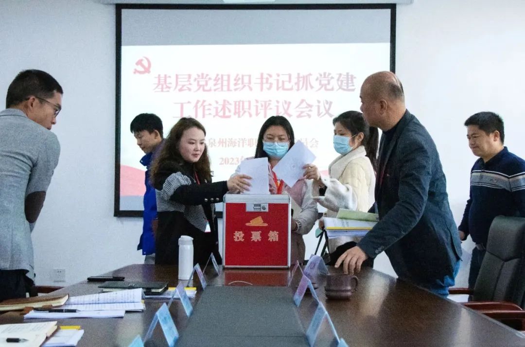 参会人员在听取述职、参阅会议材料和结合平时了解的基础上,对参加述职的党组织书记履职情况进行现场评议。经评议考核,艺术体育学院党支部、海洋工程学院党支部、航海交通学院党支部3个单位综合评价等次为“好”,其他7个单位综合评价等次为“较好”。本次会议既是一次党建专项述职评议会,也是一次基层党组织建设推进会,推动我校各党支部坚持问题导向、明确工作重点、狠抓工作落实,促进基层党建工作迈上新台阶。
