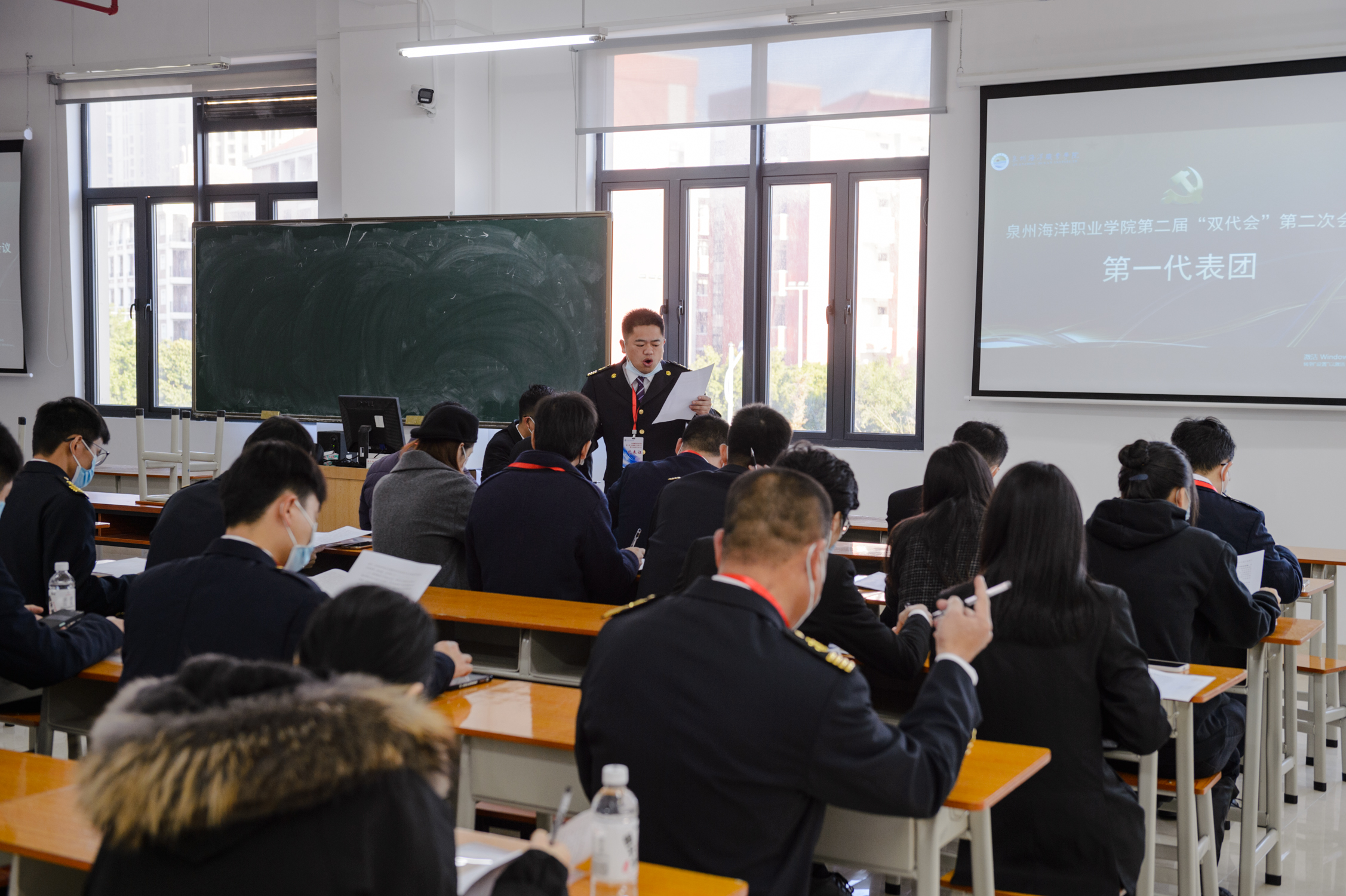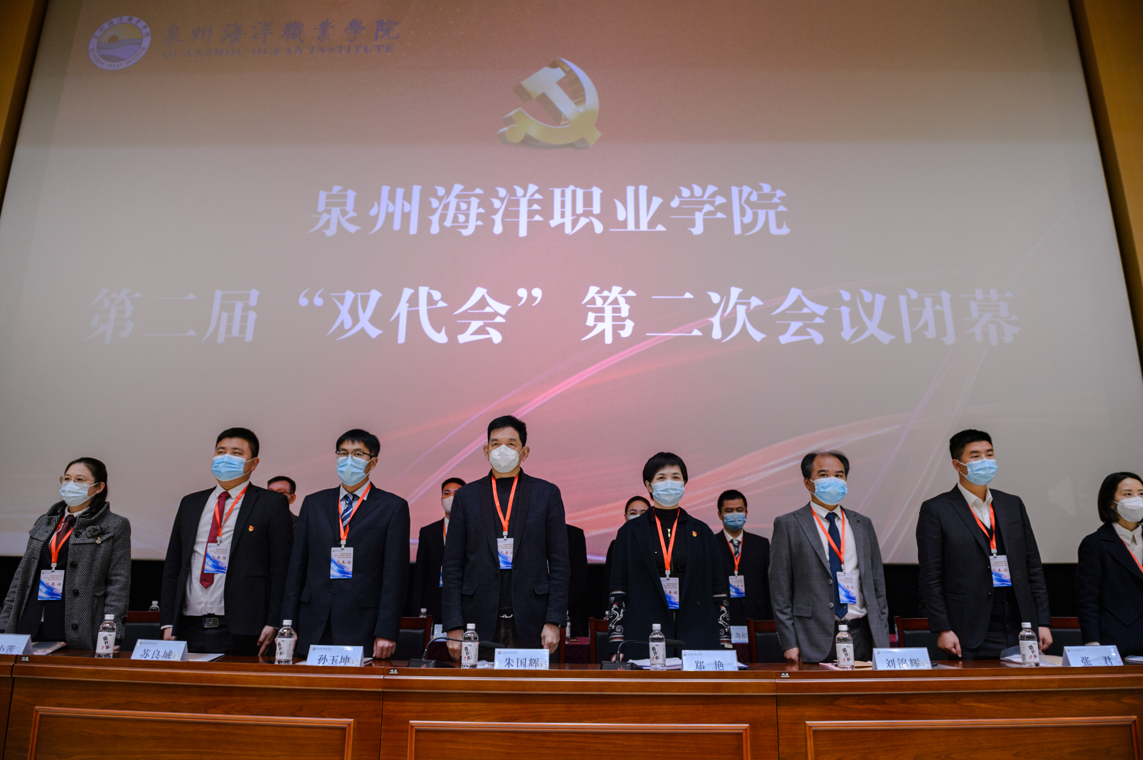 12月21日,泉州海洋职业学院第二届教职工代表大会暨第二届工会会员代表大会第二次会议在图书馆二楼报告厅隆重召开。学校领导朱国辉、郑艳、刘锦辉、钱学东、杨雄、陈永鑫、李明灿、陈东水出席大会。正式代表、列席代表共170余人参加了大会。大会由党政办主任林艺珊主持。