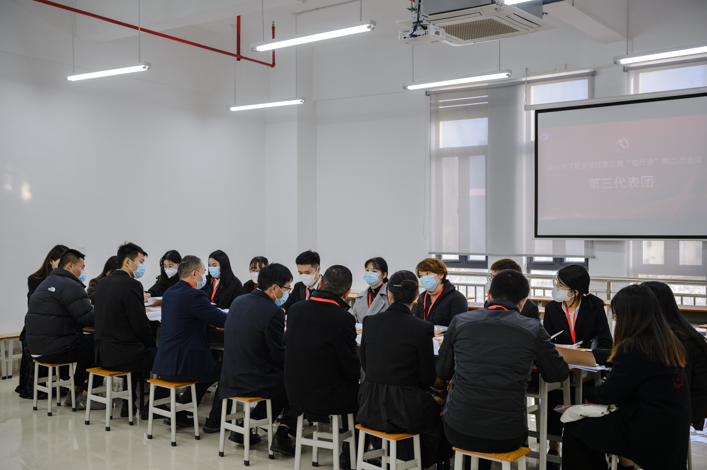 各代表团围绕相关报告进行了分组讨论。大家一致认为,学校工作报告思路清晰,任务明确,措施务实,鼓舞人心。代表们以对学校发展高度负责的精神和强烈的主人翁意识,围绕学校建设、教育教学、师资队伍建设、教职工生活福利等方面积极建言献策。代表们纷纷表示,要将思想统一到“双代会”精神上来,立足岗位,以新面貌对标新时代,以新作为践行新使命。同时,《学校工作报告》《工会工作报告》《工会财务工作报告》《学校十四五发展规划》(修订稿)也得到了代表们的充分肯定。
