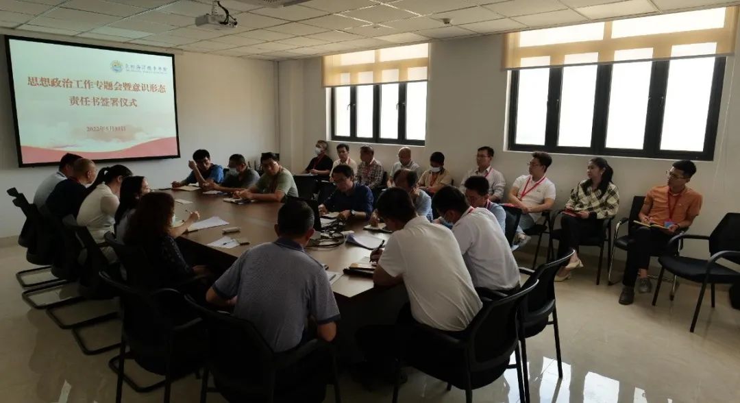 2022年5月31日,我校在图书馆楼7楼会议室举行意识形态工作研判会暨意识形态责任书签订仪式。校党委书记梁松刚、校长朱国辉,全体在家校领导、党委委员出席会议,各基层党组织书记、各行政处(室)及二级学院负责人参加会议。