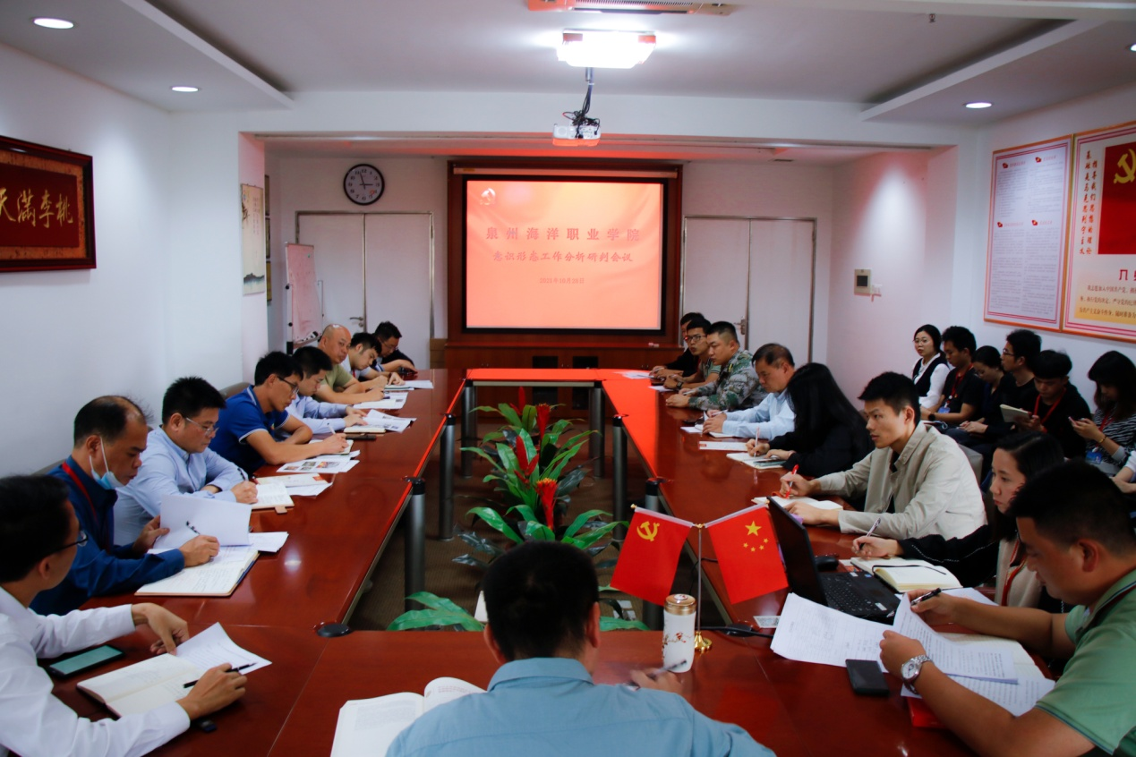 为深入贯彻落实中央和省、市委关于意识形态工作的决策部署,推动落实我校意识形态工作责任制,维护、巩固学校意识形态领域的安全稳定。2021年10月28日下午,我校于大会议室组织召开2021年下半年意识形态工作分析研判会议。全体党委委员和党员校领导出席会议,各党支部书记、副书记及支委参加会议。会议由李明灿副书记主持。