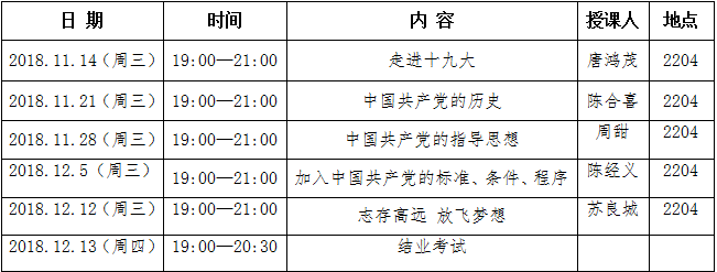 第十六期入党积极分子培训班课程表
