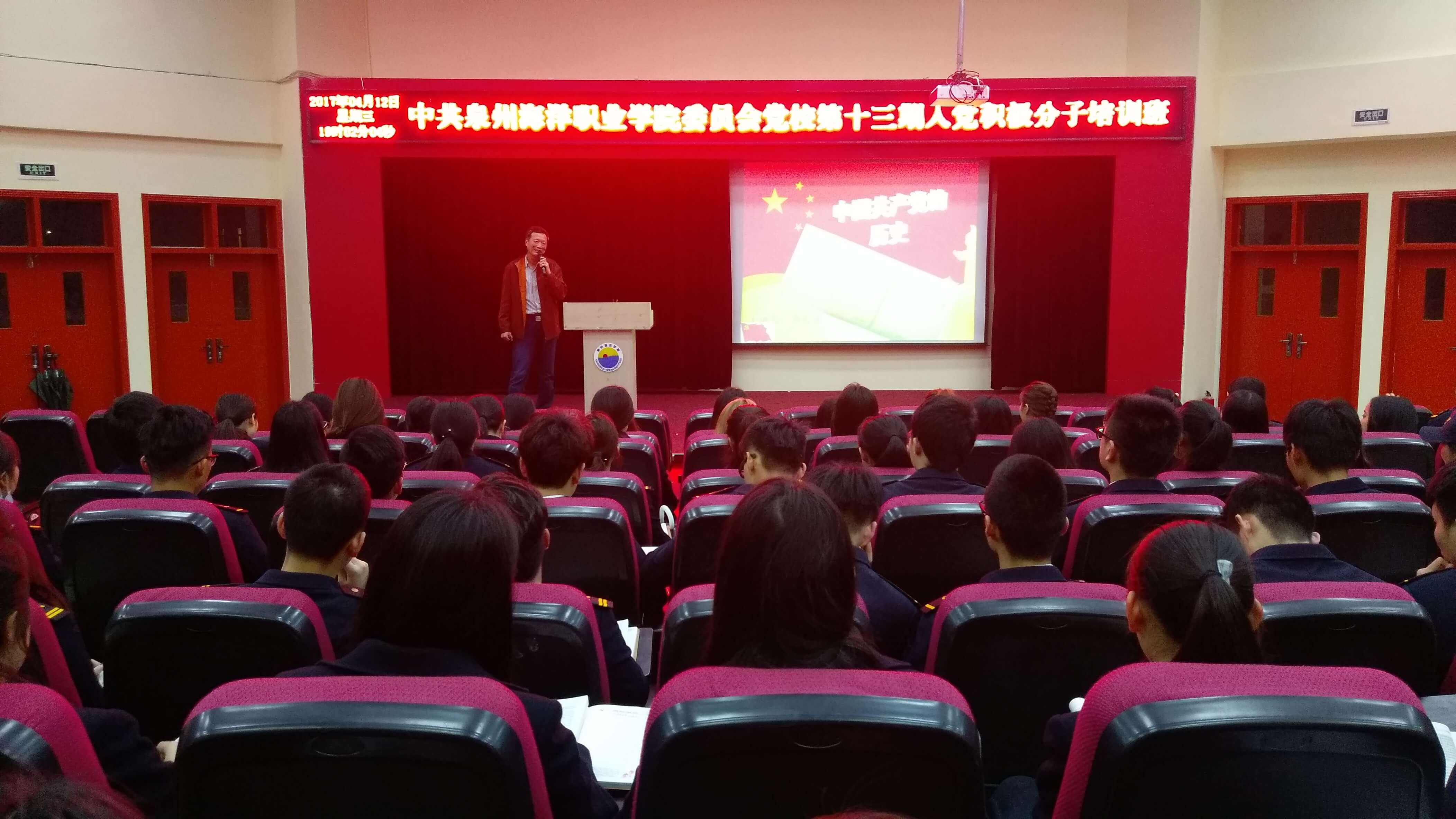 新闻中心讯(周钊军供稿 党政办编辑)近日,中共泉州海洋职业学院委员会党校举行本学期党课的第三讲——中国共产党的历史。学院党委委员、院长助理郑文谦研究员担任主讲人。