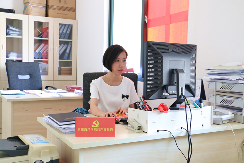 近日,机关党支部全体党员的办公桌上多了一个一个醒目的标志——“泉州海洋学院共产党员岗”的桌牌,桌牌背面印着“践行五项承诺,发挥先锋作用”的字样。这正是机关党支部持续深入推进党的思想政治建设和作风建设,践行“两学一做”的系列举措之一。