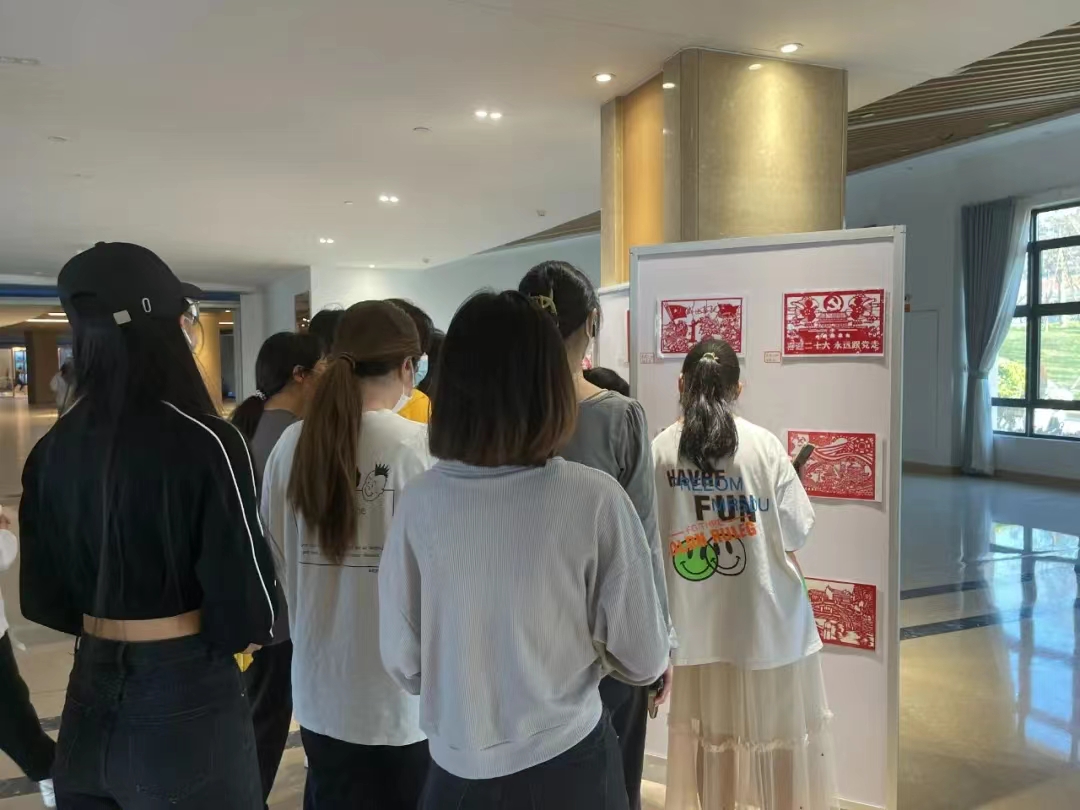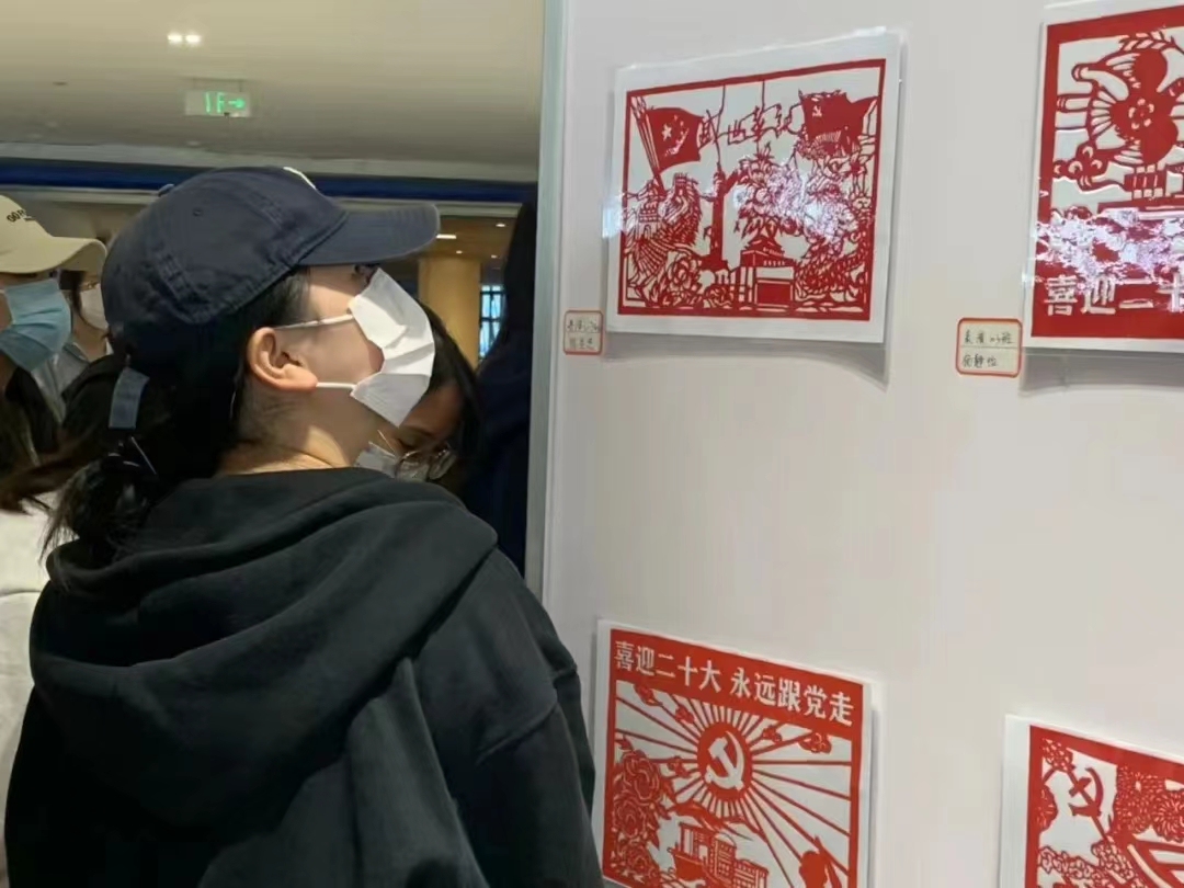 近日,为学习宣传贯彻党的二十大精神,艺术体育学院党支部在图书馆一楼大厅举办了“永远跟党走,奋进新征程”专题手工剪纸作品展,吸引了众多师生到场观展。