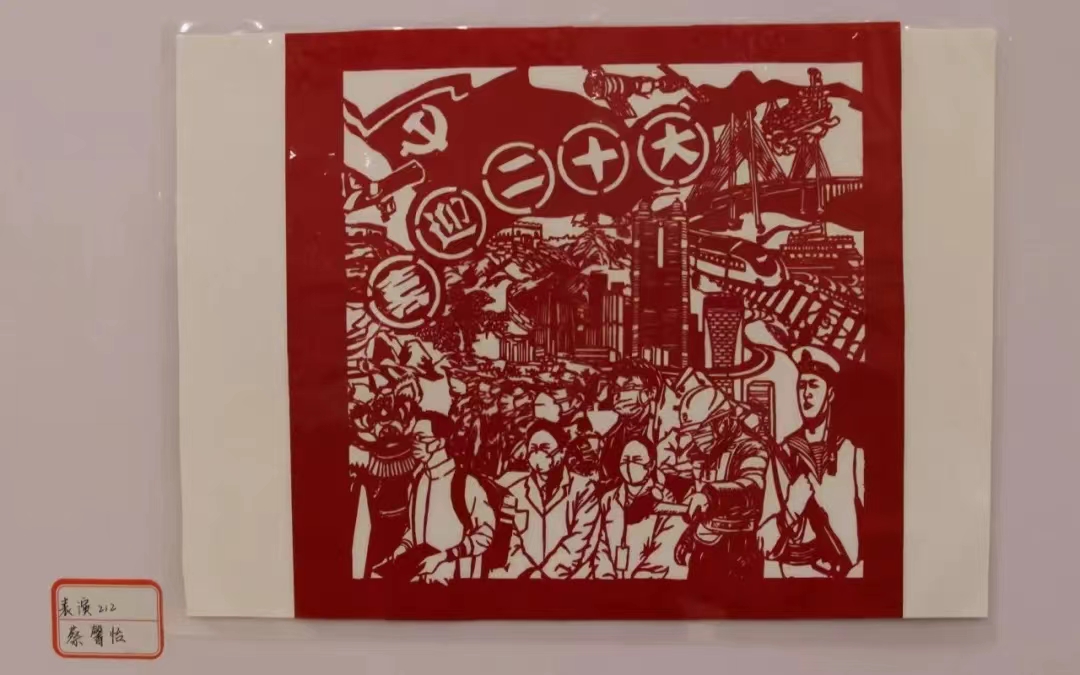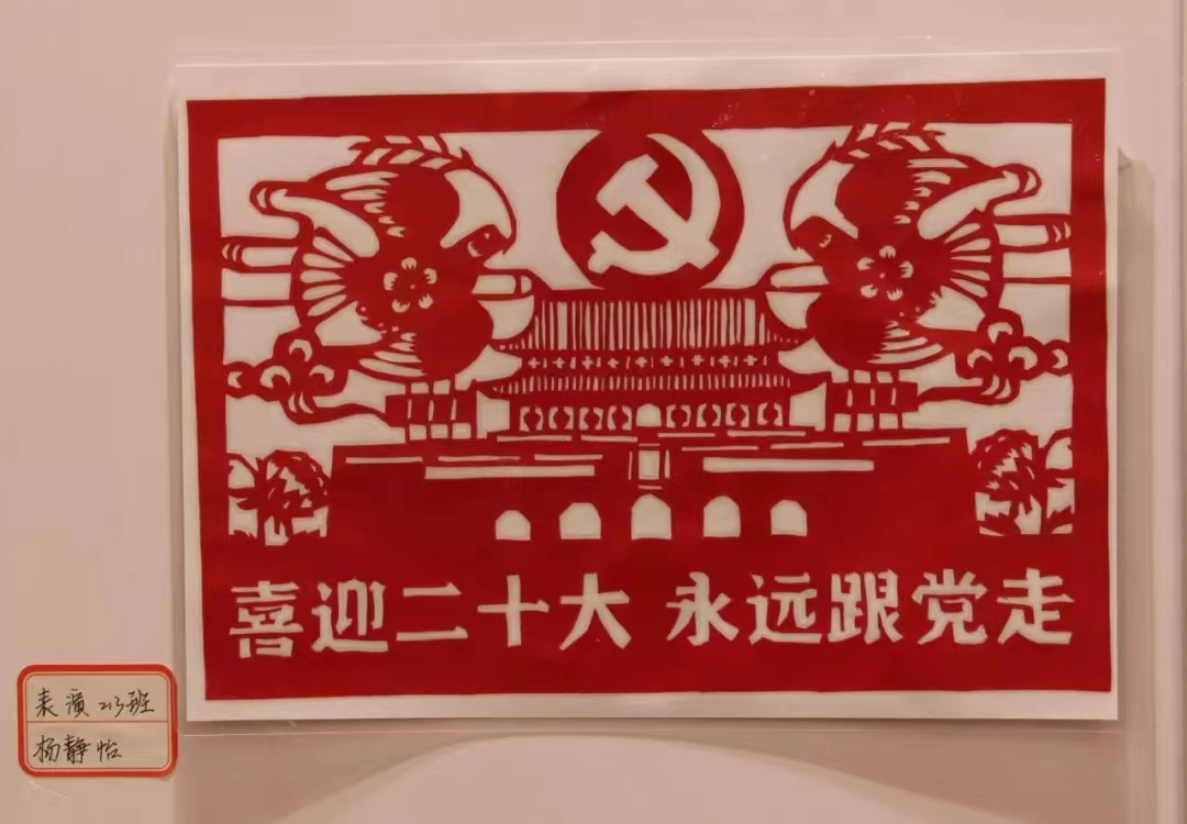 学生们在刘轹厉老师的悉心指导下,通过精心构思,巧妙制作,一幅幅剪纸作品由此形成。此次活动为剪纸这项古老的民间艺术赋予了更丰富的表现样式和时代内涵,坚持守正创新,以剪纸的形式融入人民至上、自信自立、民族团结等元素,集中展示和回顾了党接续奋斗的伟大成就和历史经验。