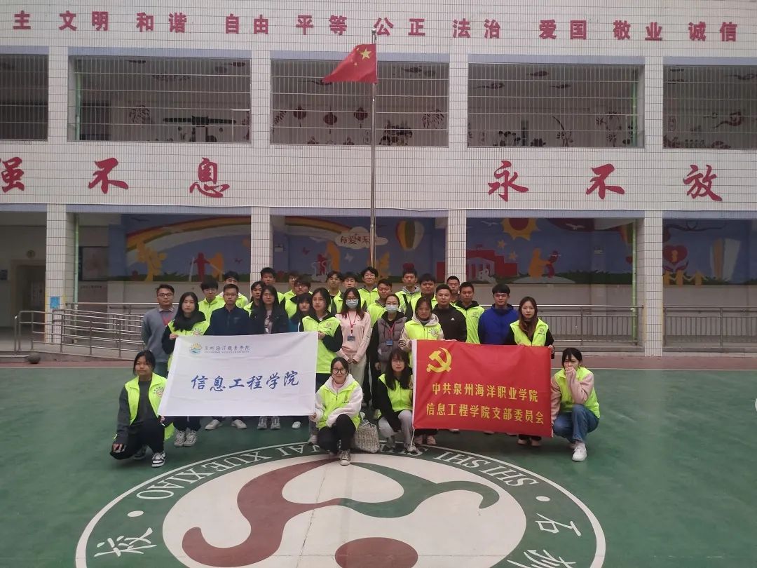 12月6日星期一下午,泉州海洋职业学院信息工程学院团委学生干部、信息工程学院党支部党员同志走进仁爱小学开展主题为“让爱传递,为爱前行”的志愿活动。凝聚爱心,聚焦行动。让每一个小朋友为爱涂鸦,我院师生对小朋友们进行绘画指导,与他们一起创作,一起完成画作以及与他们一起看图书、做游戏,进行交心,一玩耍,带给他们欢乐。