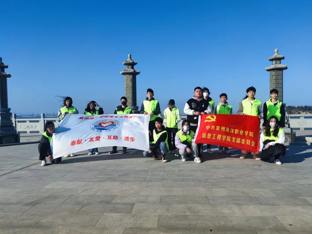 12月8日星期三下午,泉州海洋职业学院信息工程学院党支部组织入党积极分子与青年志愿者协会合作,出发至石狮市龙海禅寺,开展主题为“美丽海岸线”的志愿活动。