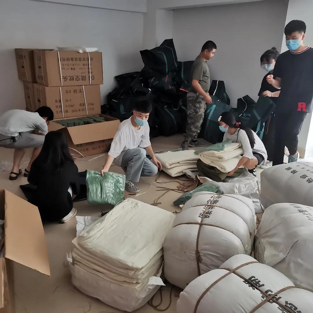 早来报到的21级新生,休息调整过后也自愿加入了整理卧具的行列。在气温攀升的夏日,这些新生志愿者们从未说过一个“累”字。