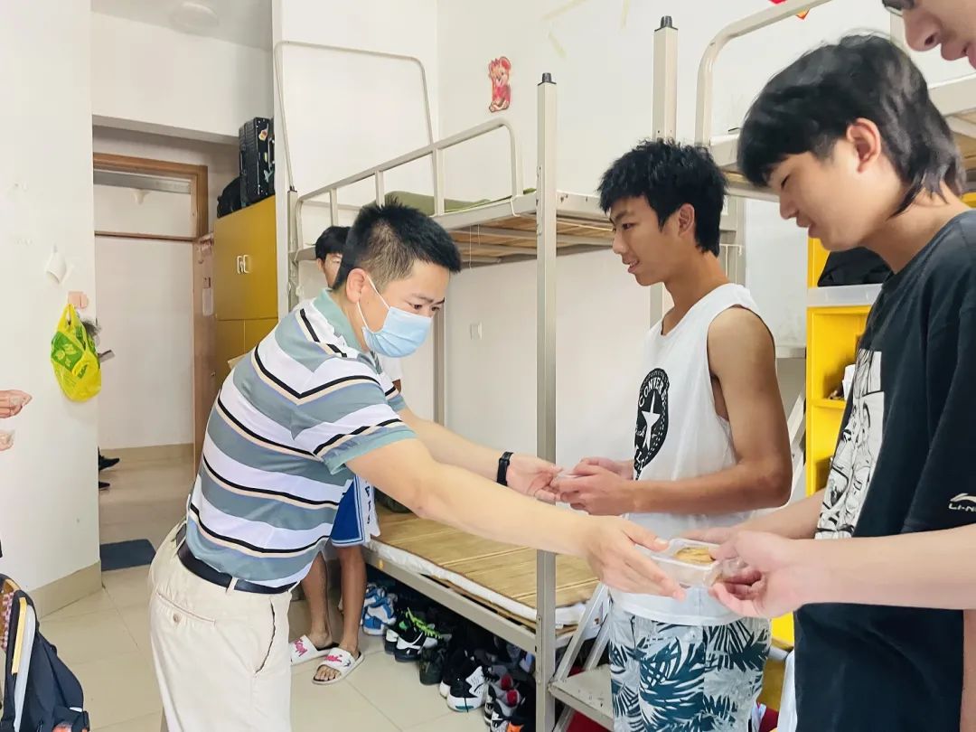 此外,陈院长将一份份包裹着关爱的月饼送到了学生的手中。陈院长告诉同学们:这份心意不仅是向同学们表达学校的关怀之情,更是为了宽解大家的思乡之意,希望同学们把学校当成自己的另一个家,遇到困难找辅导员,我们每个老师都是同学们的“家人”。