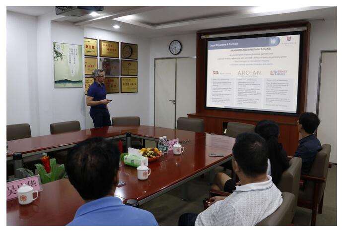 在座谈中,吴广华副院长代表学院对Rene Menzel和何芳女士的到来表示欢迎,并希望双方能在船员教育和培训方面开展合作。Menzel先生对学院的校园基础建设特别是海上专业的实训设施的投入表示赞许,在了解了学院的办学情况后,Menzel先生表示双方在国际船员的教育、培训和就业方面有很大的发展空间,并对学院在船员外派方面的工作提出了十分宝贵的建议。座谈中,Menzel先生还通过PPT向大家详细介绍了“Hammonia”公司的情况。