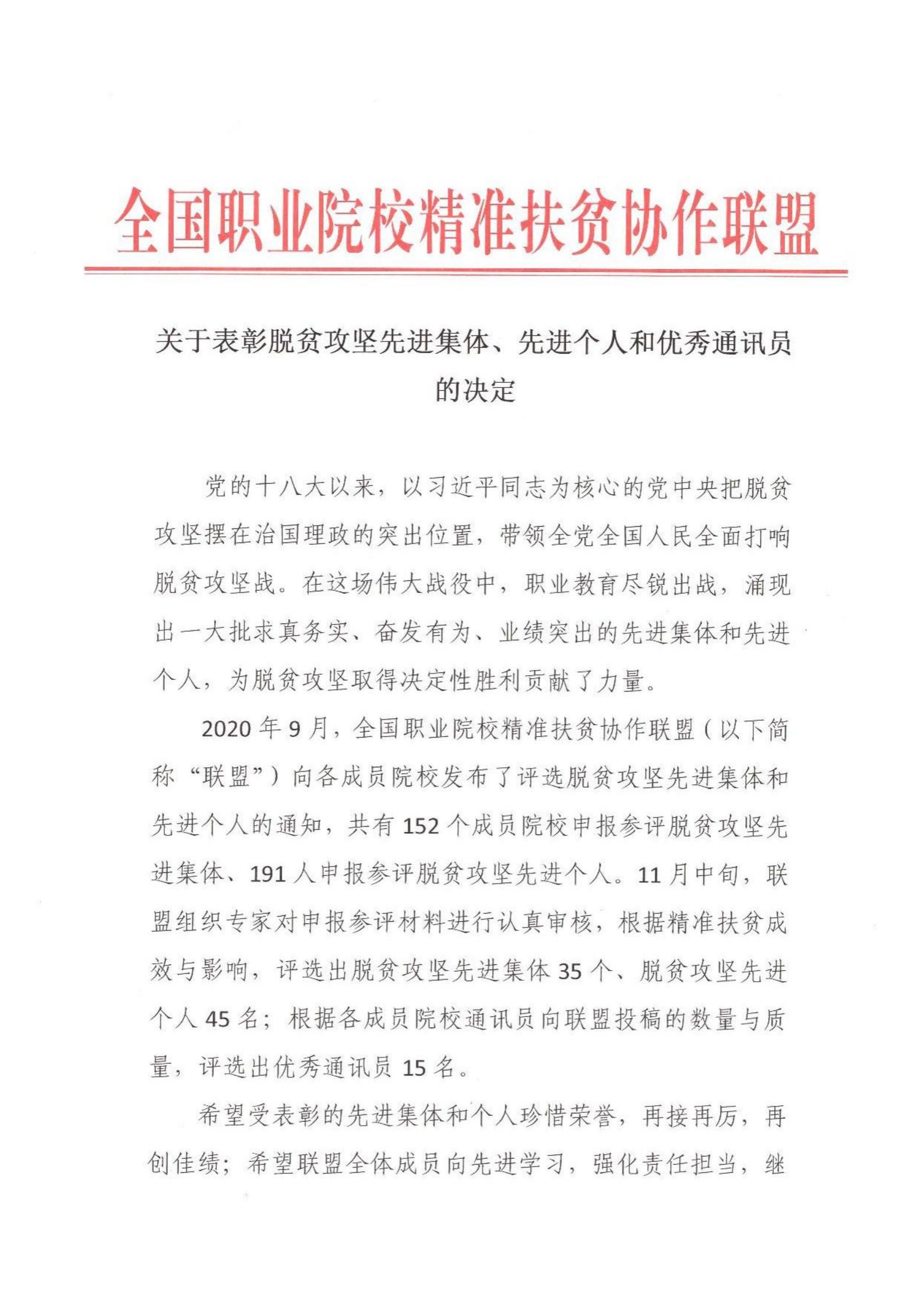 【喜讯】我校被评为全国职业院校精准扶贫协作联盟脱贫攻坚先进集体
