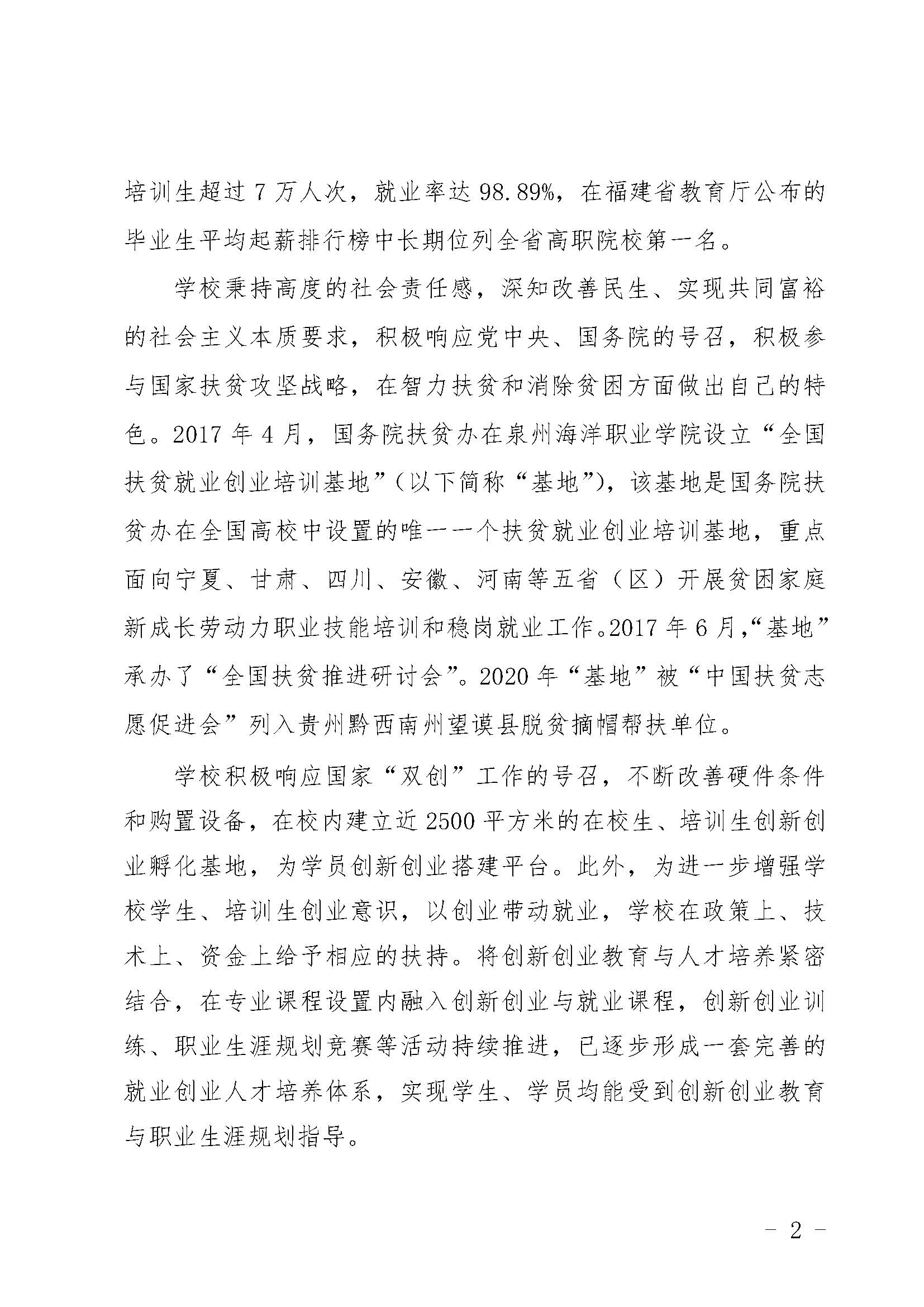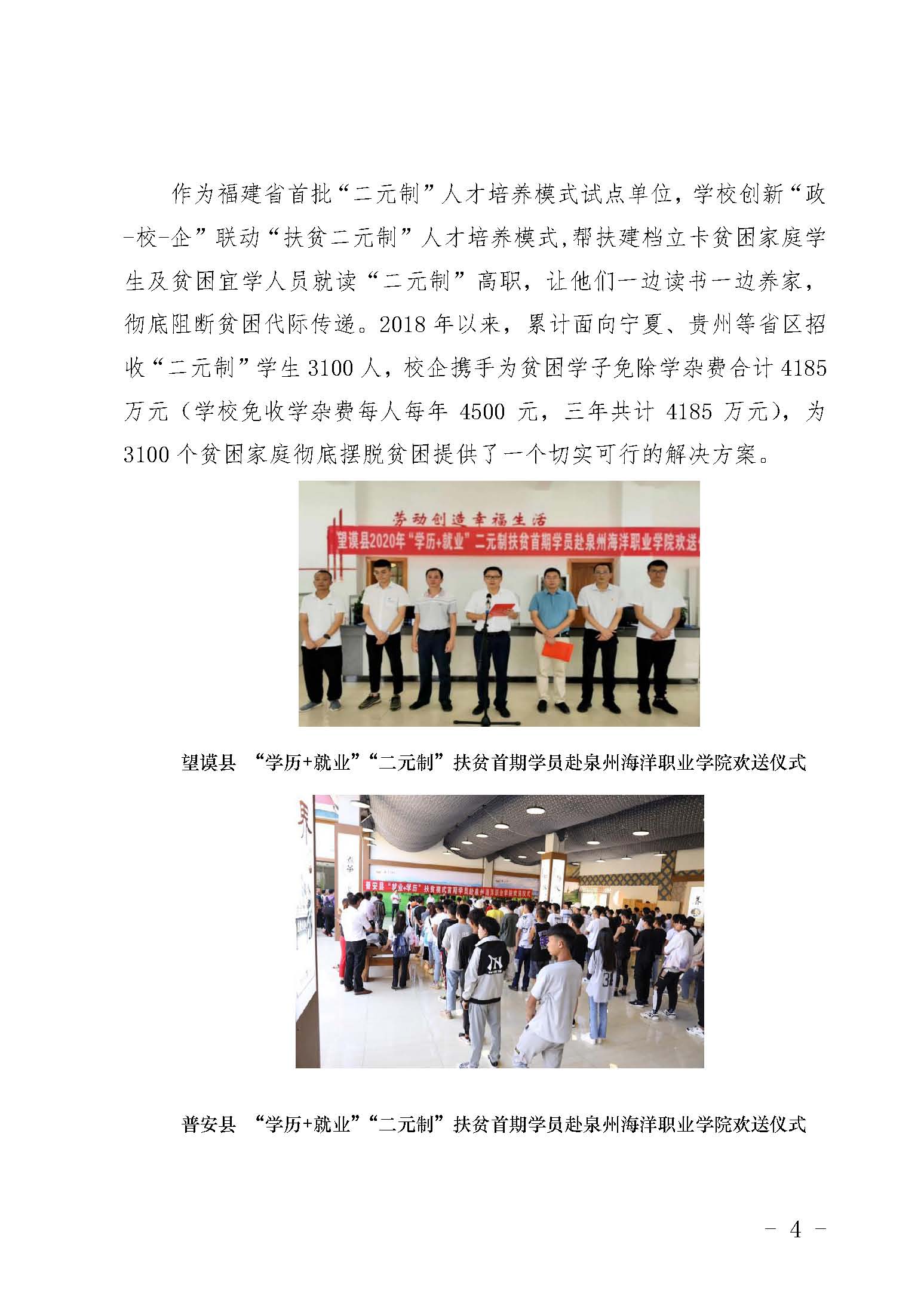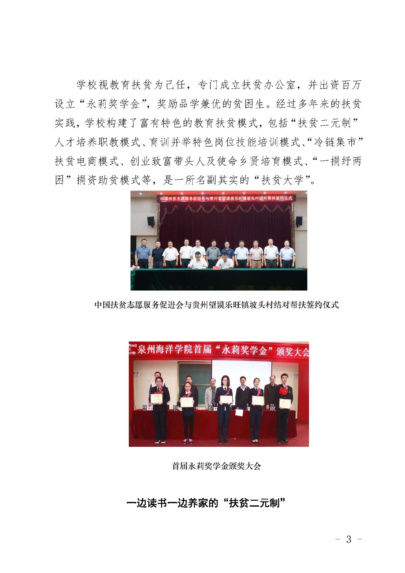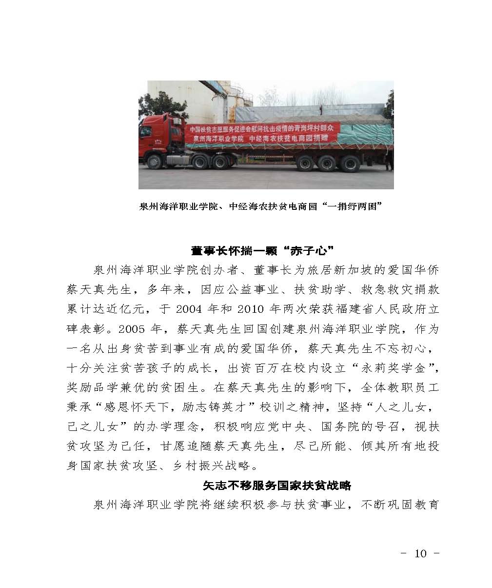 摘要:泉州海洋职业学院于2020年10月14日受邀出席在北京召开的全国扶贫工作大会并作典型发言,现场多个国家媒体包括新华社、中国经济日报、央广网、中国经济新闻联播、中国农网、今日头条、凤凰、搜狗、百度、搜狐、腾讯、360资讯、华人头条、阿里UC头条、东南网、中国青年网、三农号、石狮日报、人民日报社中国经济网/中国城市网、朝闻天下等)对我校教育扶贫做了专题报道,国务院网站、福建省教育厅网站等国家及政府网站纷纷转载。