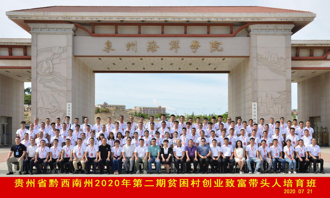 新闻中心讯(党政办报道)为贯彻落实党的十九大精神和《中共中央国务院 关于打赢脱贫攻坚战的决定》,加强培育学校对口帮扶地贵州黔西南州贫困村创业致富带头人。7月20日,贵州省黔西南州2020年第二期致富带头人培育班在我校扶贫联合培训单位——泉州海洋职业学院基地正式开班。黔西南州扶贫开发中心主任周义力出席开班仪式并讲话,开班仪式由泉州海洋职业学院副校长张超主持。