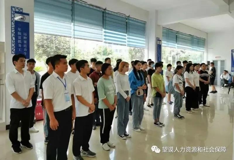 7月15日,望谟县2020年"学历+就业"二元制扶贫首期学员赴泉州海洋职业学院欢送仪式在县人力资源服务有限公司举行。