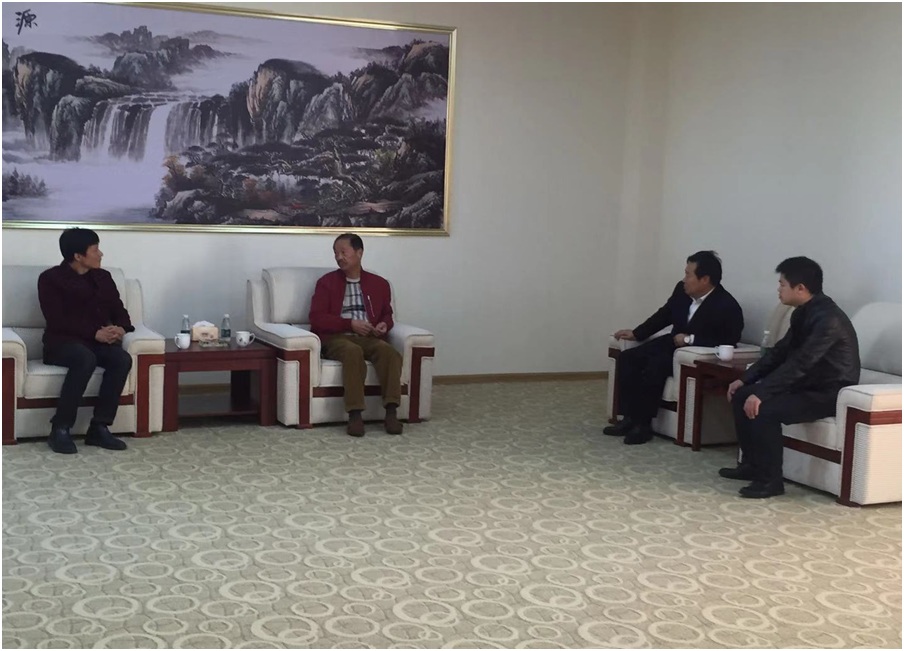 校就扶贫对接工作进行参观考察交流。左一为李跃腾