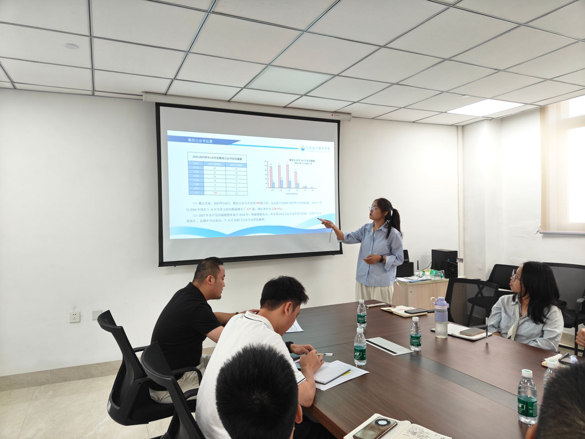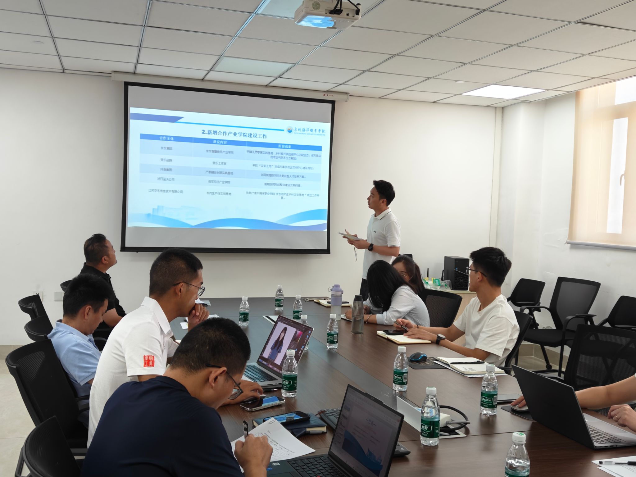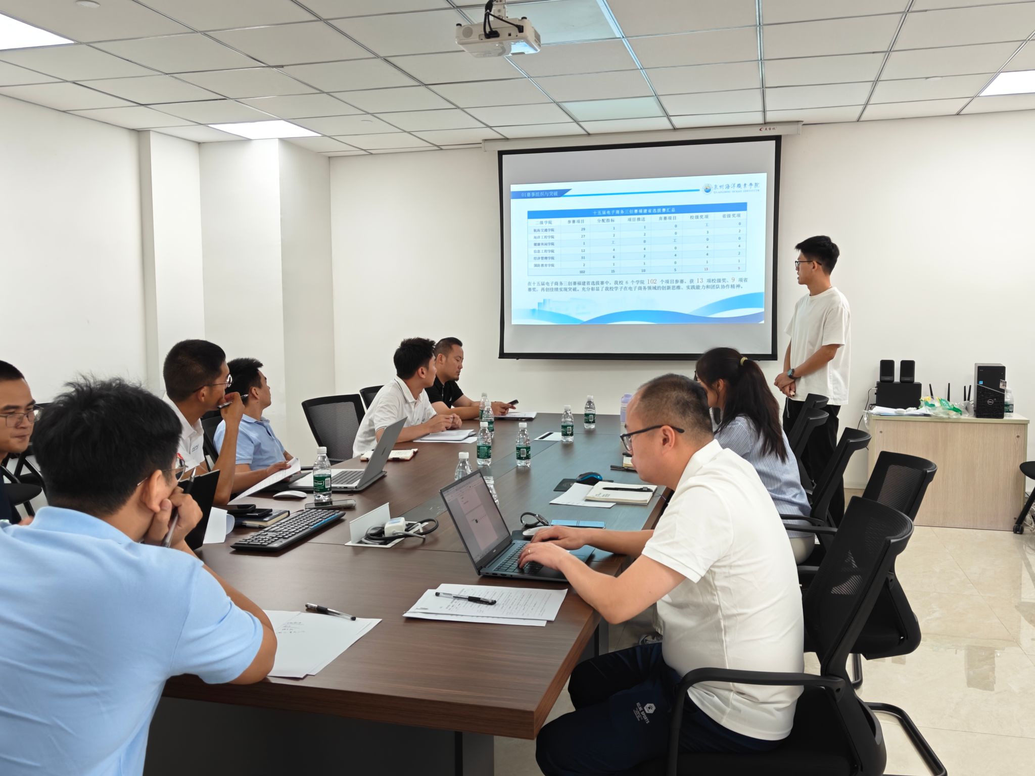 述职汇报会议由陈永鑫副校长、蒋滨滨副处长、周甜副院长、廖贵强副院长担任评委。汇报按就业创业中心、校企合作中心、国际交流中心、综合办公室、教研中心、创训中心的顺序依次进行。各中心围绕上半年重点任务完成情况、数据成果、问题剖析、经验复盘以及下半年工作计划、目标举措、资源需求等方面进行了详细汇报。