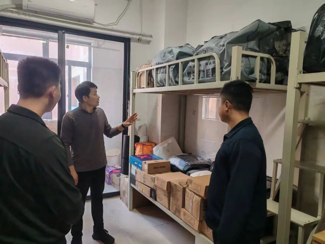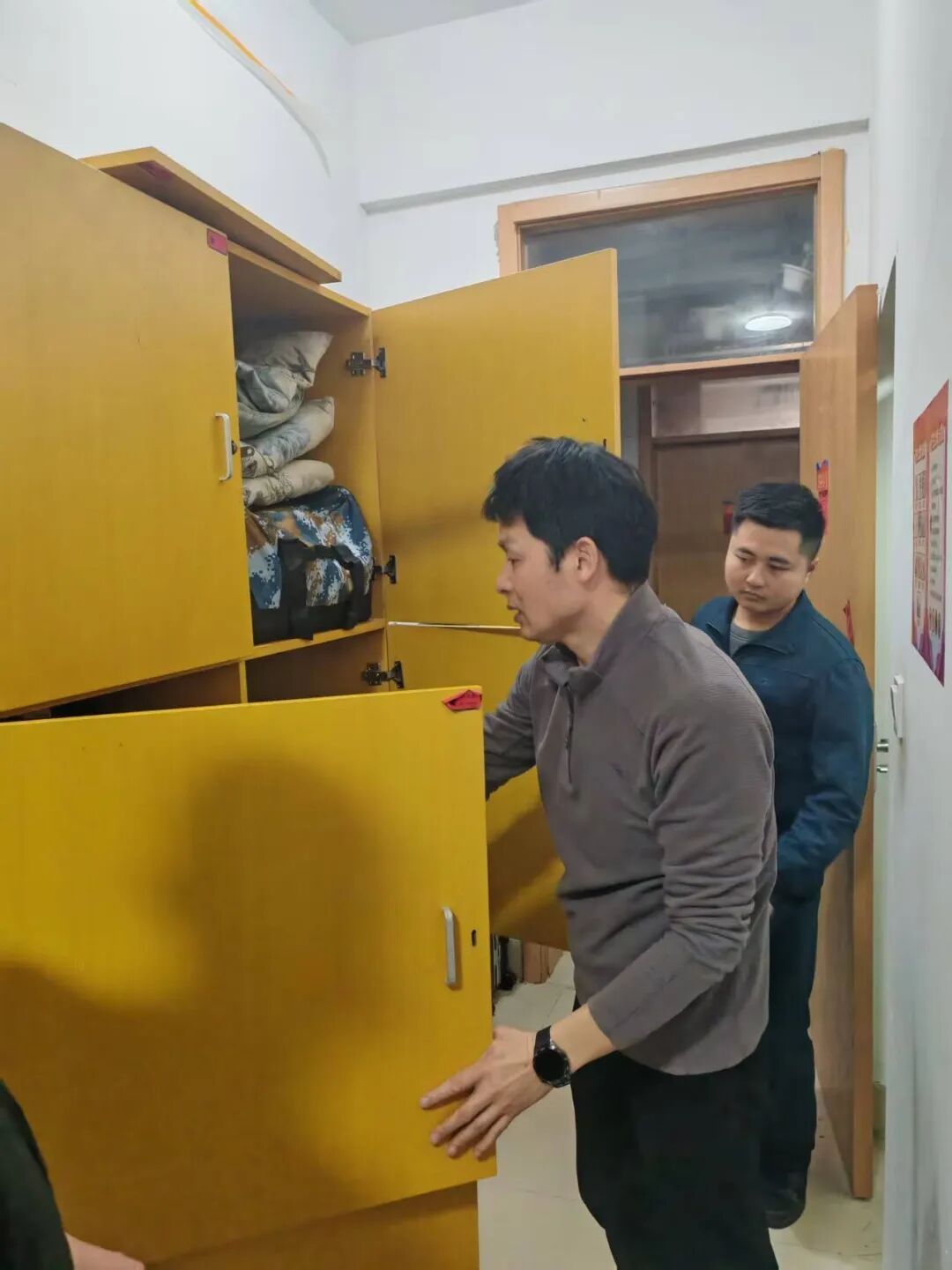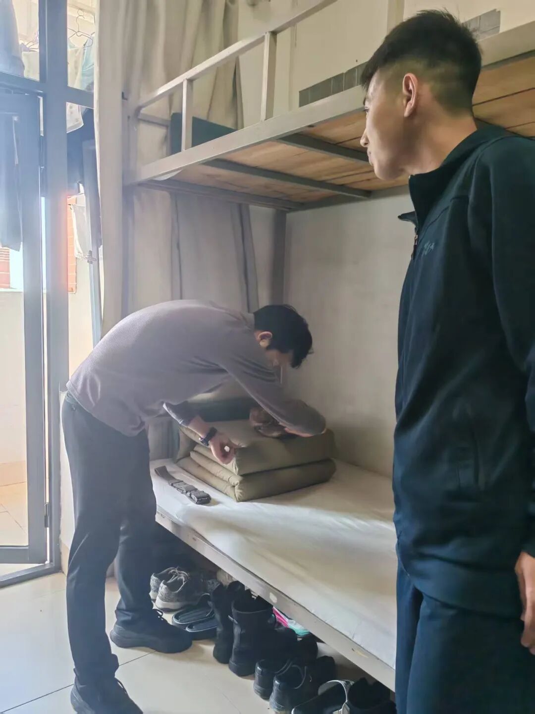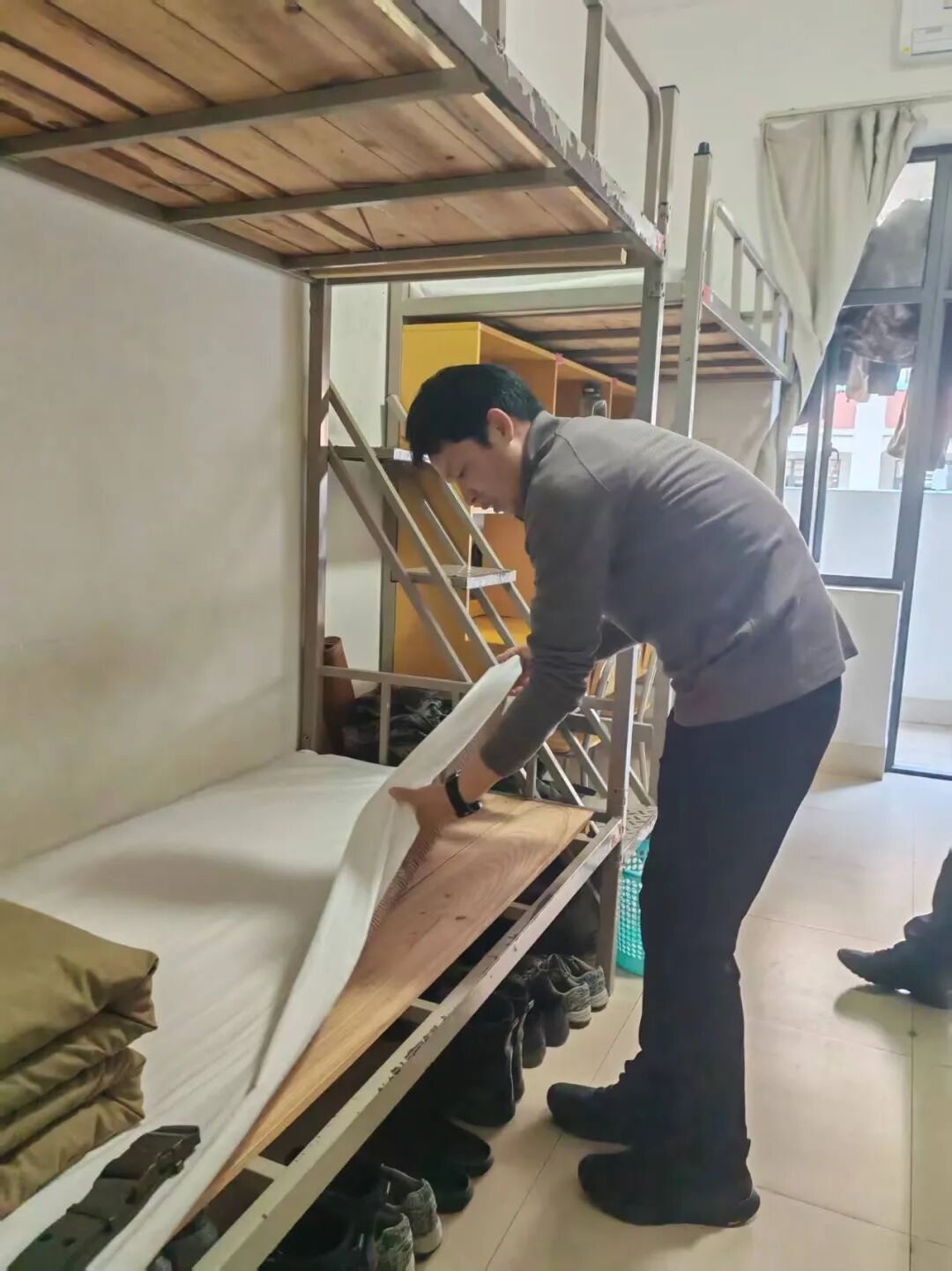 为恢复国防教育学院学生宿舍内务卫生,巩固学生社区建设成果,2月18日下午,邵院长带领学院领导班子及全体教官第二次深入学院宿舍开展内务卫生及安全专项检查,围绕消防设施、宿舍用电、内务卫生、学生需求、思想动态进行排查。