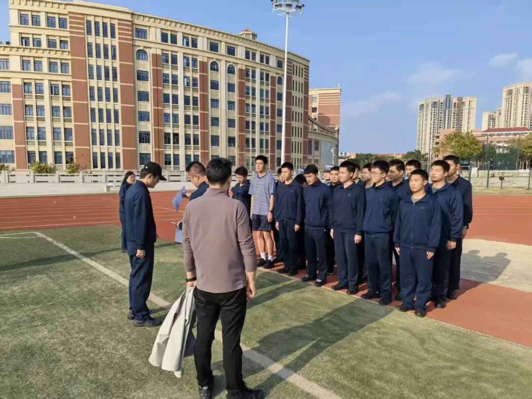 在队列训练区,邵院长逐队检查学员们的军容军纪及训练动作。并及时纠正学员在队列中的细节瑕疵,他强调:“队列素养是军人作风养成的基础,要在细微之处见精神,在点滴之中铸铁骨。