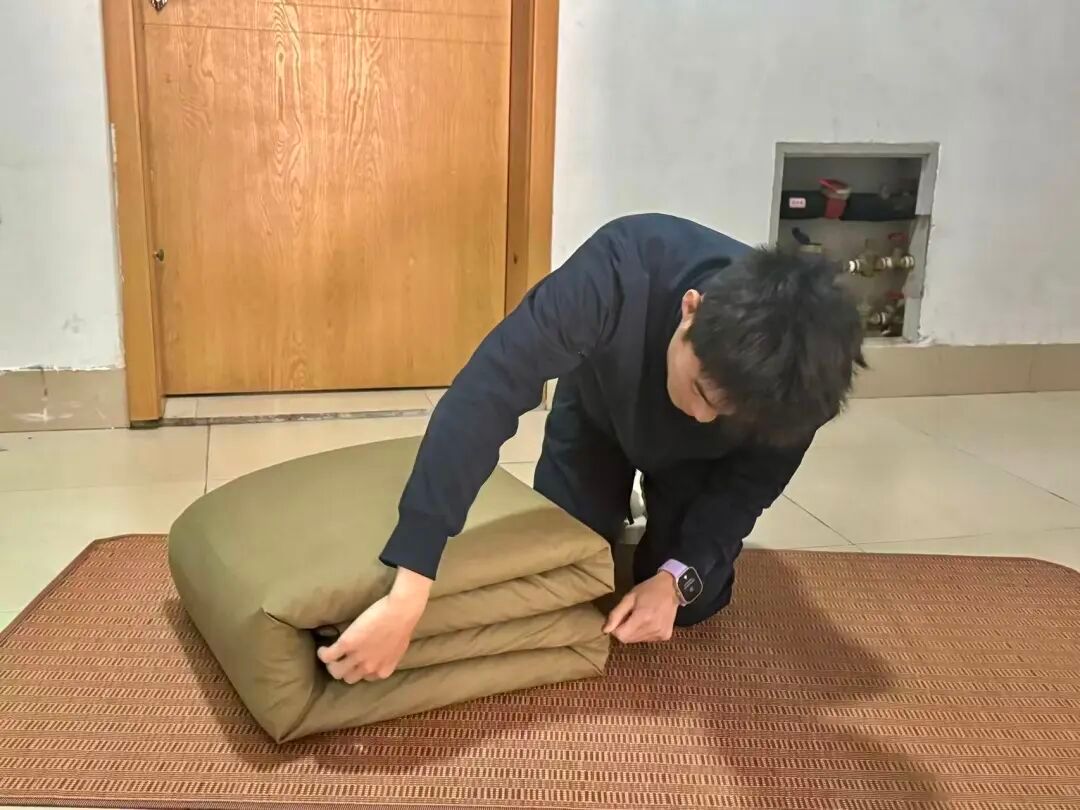 清晨的阳光洒进宿舍,平整的床单、棱角分明的 “豆腐块”,成为国防教育学院里一道整齐亮眼的风景。叠被子,看似是一件简单的日常小事,却是国防教育中作风养成、纪律意识、意志品质的生动一课。从最初的褶皱杂乱,到反复整理、耐心压实;从手法生疏、线条松散,到棱角分明、方正如切。每一次对折,都是对耐心的打磨;每一次抚平,都是对细节的追求;每一次整理,都是对自我的严格要求。