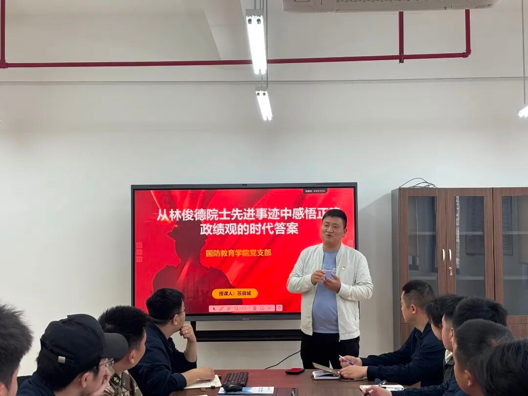 为深入学习贯彻正确政绩观,筑牢全体党员的思想根基,切实把英模精神转化为履职尽责的实际行动,3月23日,国防教育学院组织全体在校党员开展专题党课学习。学院党支部书记苏良城主讲,学院全体在校党员参会,共同围绕“从林俊德院士先进事迹中感悟正确政绩观的时代答案”这一主题,感悟英模初心、凝聚奋进力量。