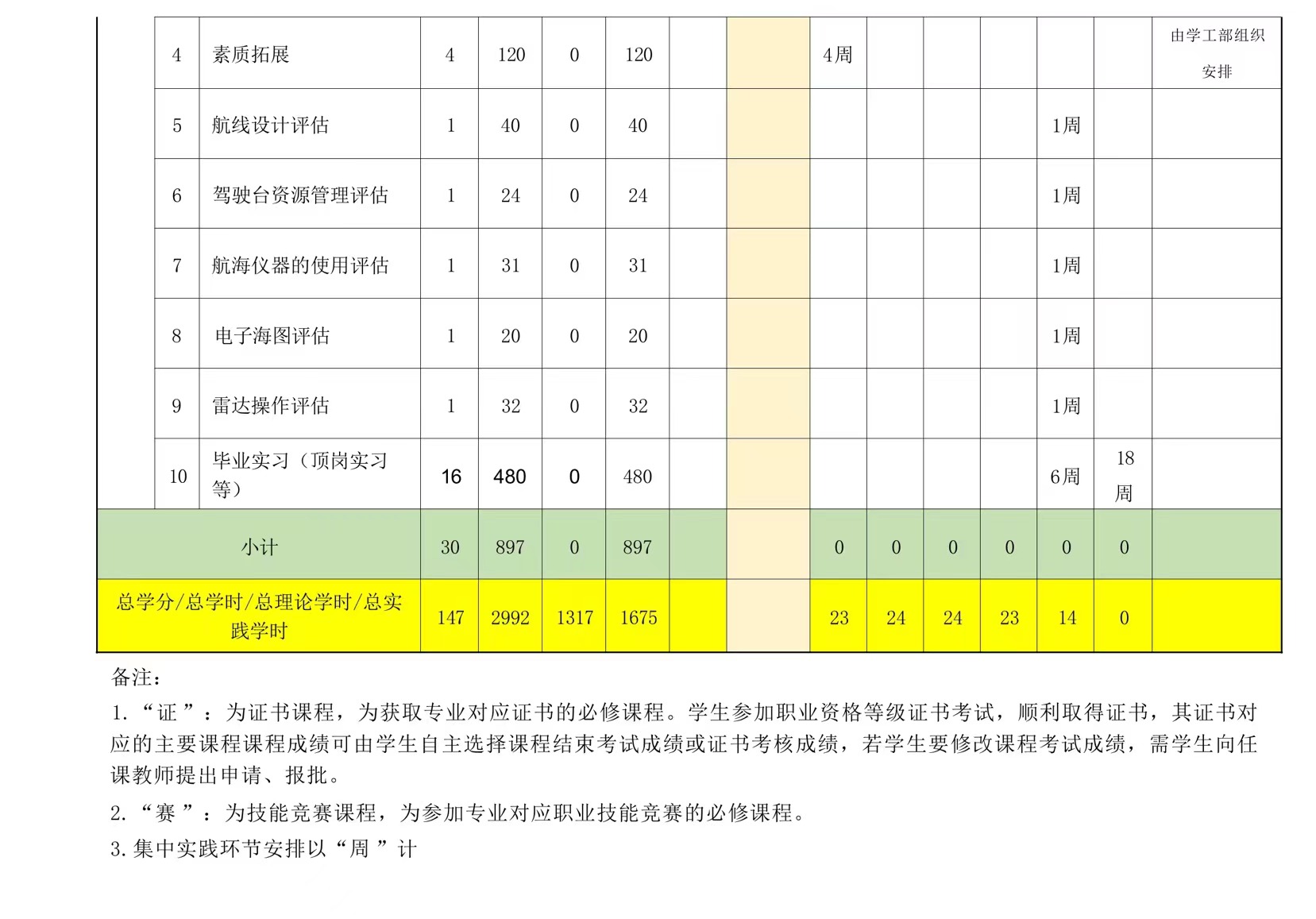 素质要求:具有合格的政治素养,良好的公民道德与职业道德,从事航海技术专业的职业素养,具备感恩励志、服务关怀和一定的创新创业素质,健康的身体素质与心理素质,基本的人文与科学素养。具备一定的劳模精神、劳动精神和工匠精神,有爱岗敬业、艰苦奋斗的态度,勇于创新、精益求精的品质,忠诚奉献、为国为民的担当。
