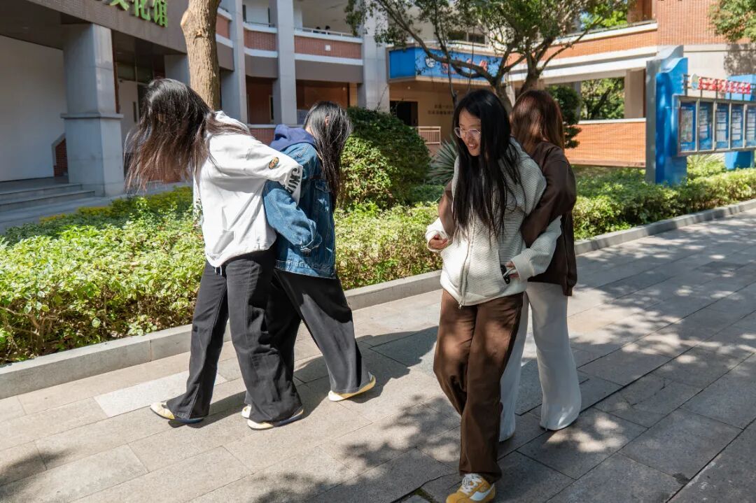 开场环节“护树小卫士”接力赛迅速点燃全场热情。每组两名学生面对面站立,用胸背夹住气球模拟“树苗”,在不能用手触碰的情况下协作运送到终点,如中途掉落则需返回起点重新开始。比赛中,同学们配合默契、步伐紧凑,加油声与欢笑声此起彼伏,既展现了良好的团队协作精神,也让参与者切身体会到“护树”的细致与不易。最终,率先完成接力的小组赢得小绿植奖品,将绿色希望与荣誉一并收入囊中。