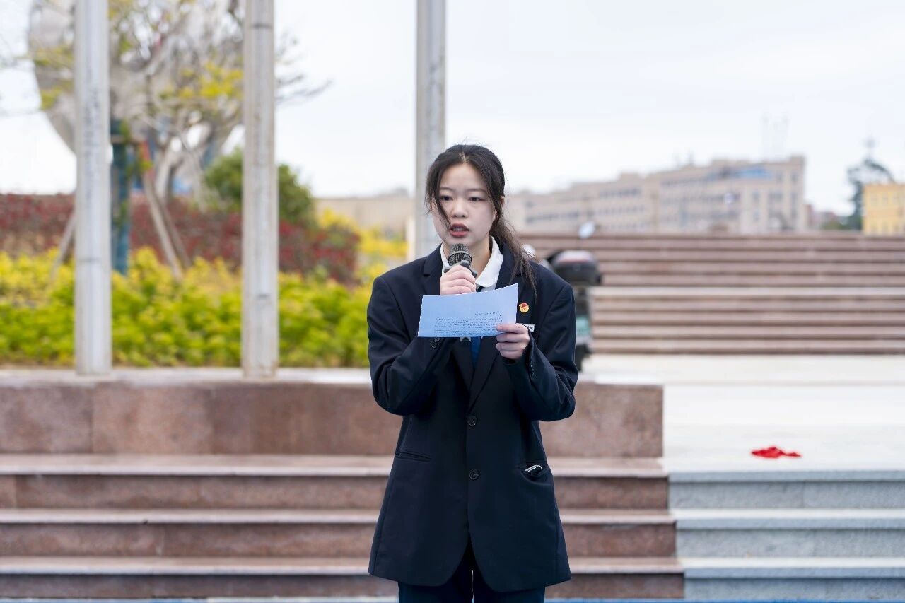 随后,辅导员林婧雯作为教师代表发言。她勉励同学们树立正确价值观,将“奉献、友爱、互助、进步”的志愿精神融入学习与生活,以青春之我、奋斗之我,不负时代、不负韶华,为新学期开好局、起好步。