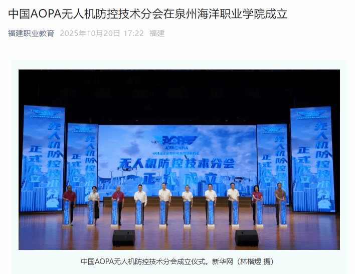 【人民日报-中国城市网】填补行业组织空白,筑牢低空安全防线 中国AOPA无人机防控技术分会在闽成立
