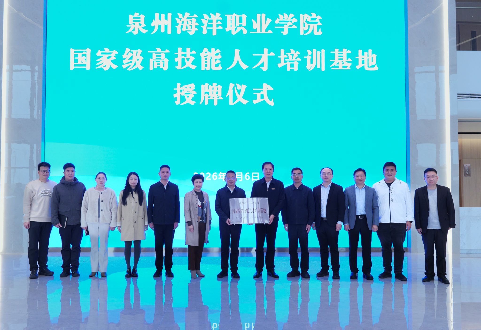 许长春为泉州海洋职业学院颁授“国家级高技能人才培训基地”牌匾。