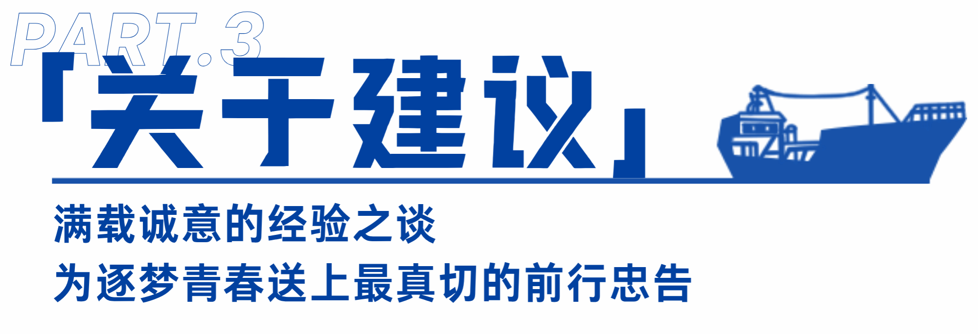 跟大家说句掏心窝子的话:在学校一定要把专业学扎实了,到哪儿都吃香。咱们航海人,心里就得装着大海。既然选了这条路,就别在岸边站着——深蓝的舞台,够你们折腾的!不管是跑船还是当兵,咱们航海技术专业出来的人,骨子里都带着一股不服输的劲儿。加油,未来是你们的!