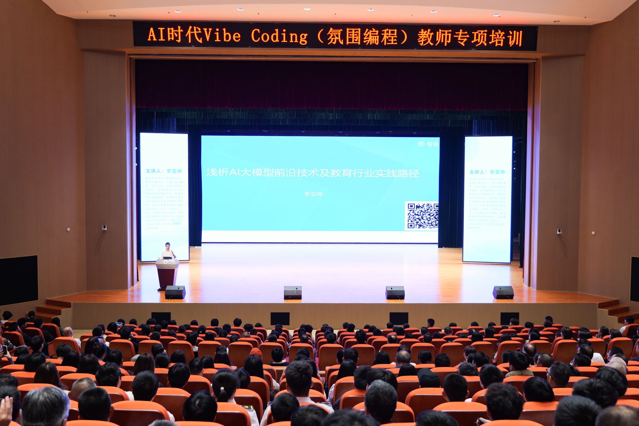 4月16日至17日,学校特邀智谱AI高级别专家团队进校,开展“AI时代Vibe Coding(氛围编程)”教师专项培训。培训以实操能力提升为核心,围绕人工智能融入课堂教学的真实需求展开,重点服务OPC(One Person Company)项目推进和AI课程体系建设,推动教师能力结构向“会用、能教、善用”转变。