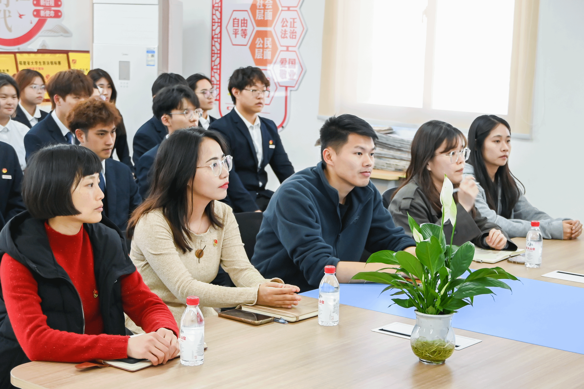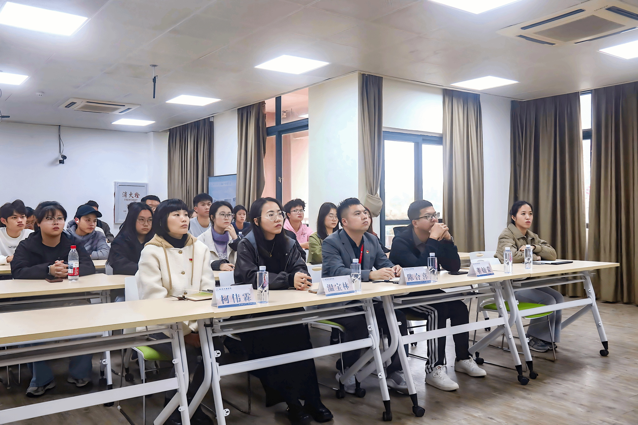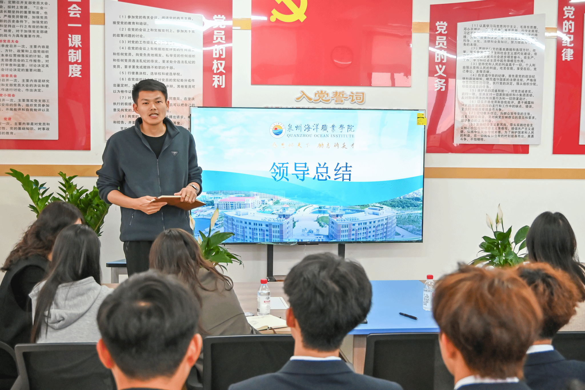 人工智能学院的收官分享会上,国家励志奖学金获得者潘逸腾、国家奖学金获得者陈斯浩,结合学业提升、学生工作与志愿服务,分享知行合一的青春实践。本场特别增设资助政策宣讲环节,范丽菁老师详细解读国家奖学金、国家助学贷款、退役军人教育资助等政策的申请条件与评审标准,阐明志愿服务时长在评审中的重要权重;陈鹏宏老师就退伍学生助学金、国家励志奖学金申请等常见问题补充解答。