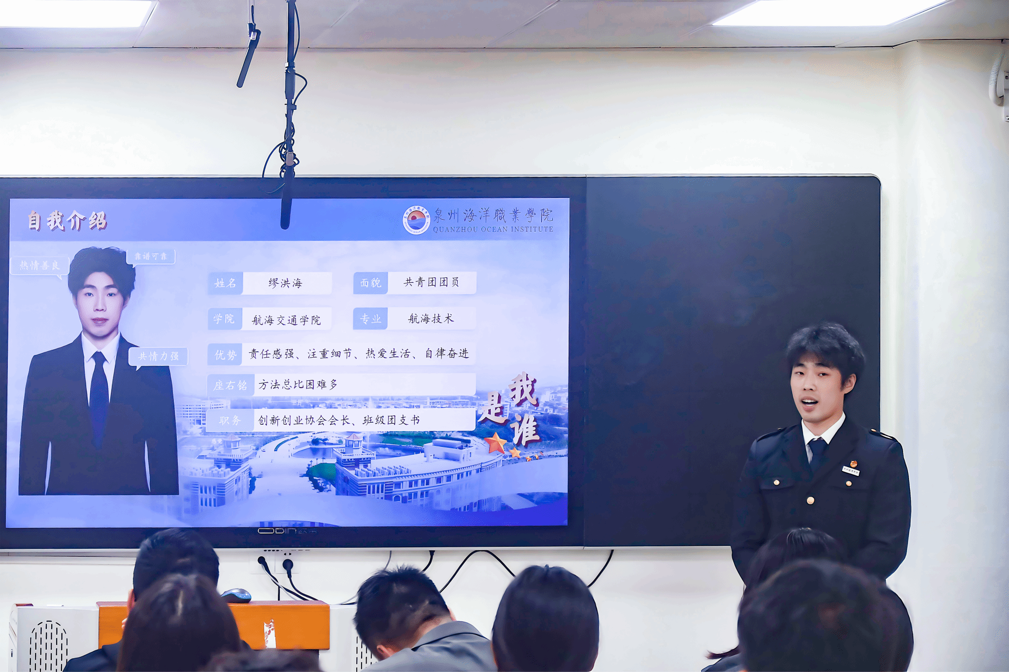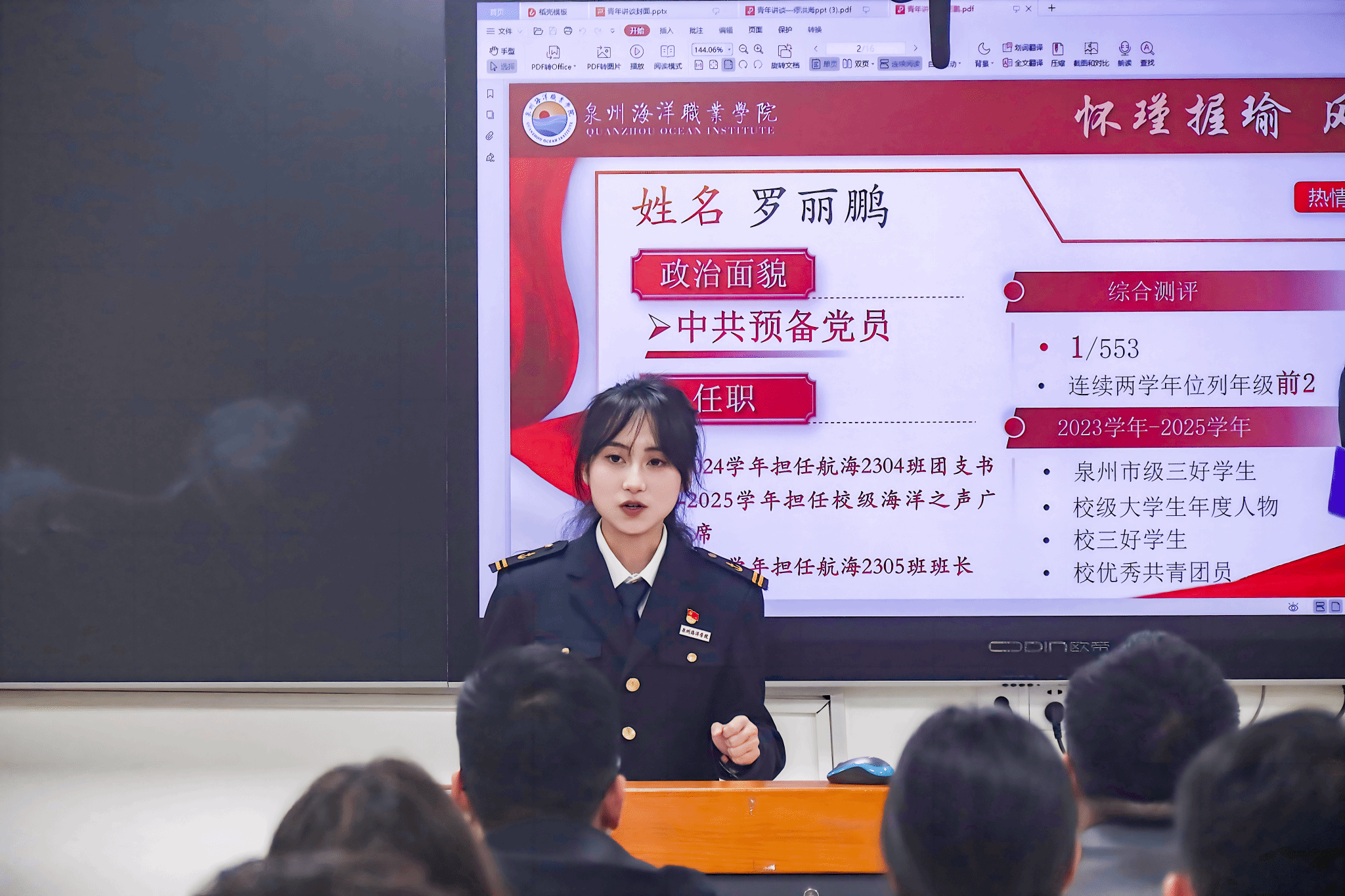 航海交通学院承办分享会中,国家励志奖学金获得者缪洪海同学讲述了深耕专业、勤学不辍的奋斗故事;国家奖学金获得者罗丽鹏则勉励大家立足集体担当与实践历练,展现新时代青年的责任与担当。航海交通学院直属党支部书记陈合喜激励同学们:坚定理想信念,锤炼过硬本领,勇于争先奋进。互动环节中,两位主讲人针对学习规划、技能竞赛等问题细致解答,现场氛围务实热烈。
