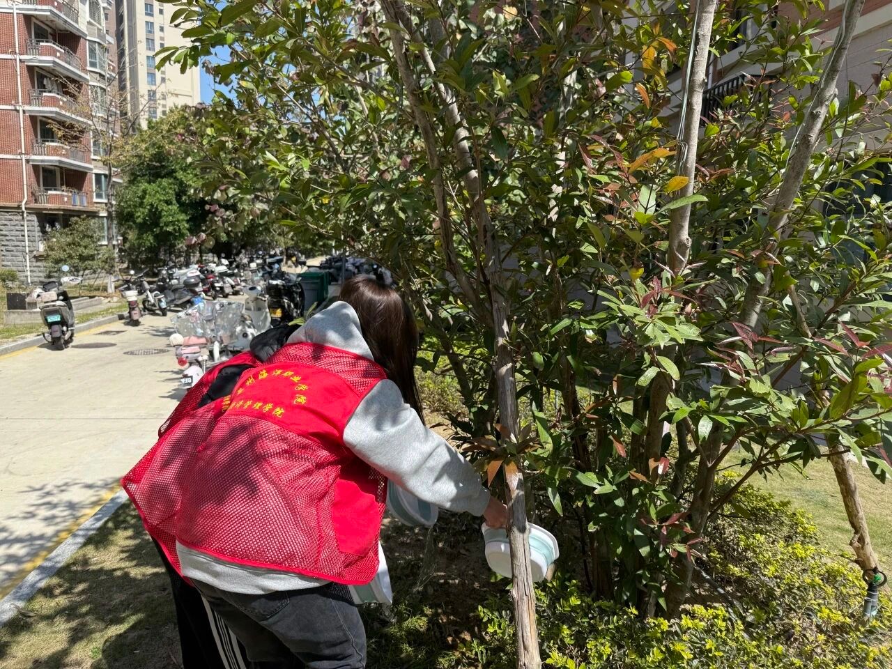 劳作现场氛围热烈,团员们干劲十足,有序取水、细心浇灌,悉心呵护每一株苗木的生长。涓涓清水滋养草木,滴滴汗水彰显担当,大家在躬身实践中体悟生命力量,以朴实行动践行护绿初心。