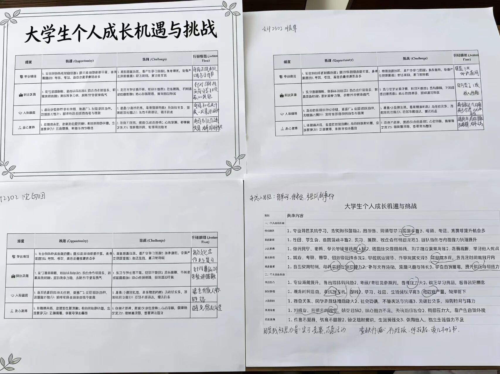 随后,同学们拿起纸笔,认真填写《大学生个人成长机遇与挑战》规划表。从学业精进的目标设定,到职业发展的路径探索,再到人际交往与身心素养的提升计划,每一行文字都承载着对未来的期许,每一笔规划都彰显着青春的担当。同学们还分享自己的行为规划与成长感悟。大家相互借鉴、彼此鼓励,在展示中汲取前行的力量,在交流中坚定奋斗的决心,让青春在实干中绽放光彩。