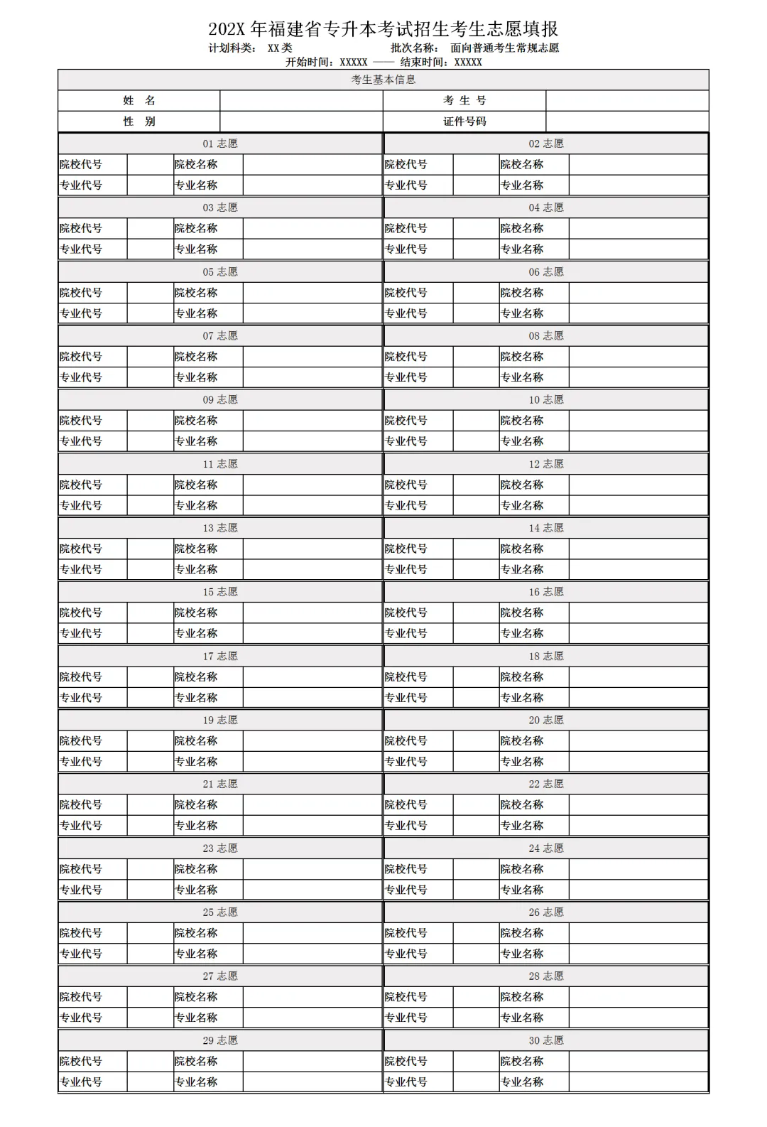 在正式填志愿前,下载福建教育考试院最新志愿样表电子版进行预填,避免正式填志愿时填错!
