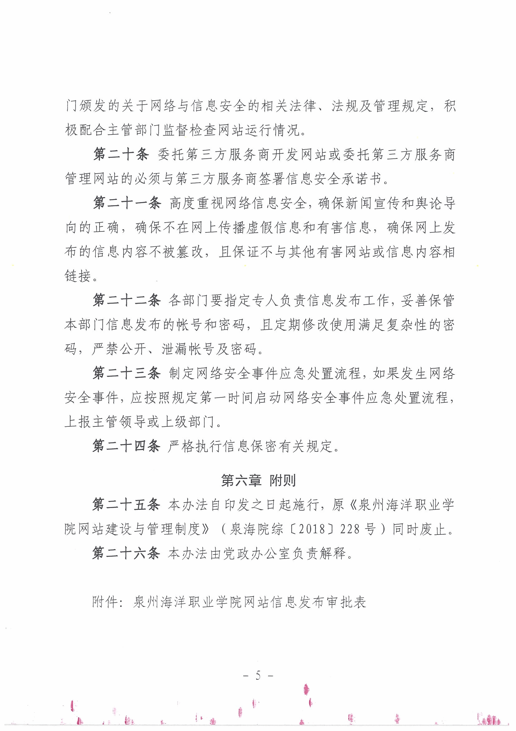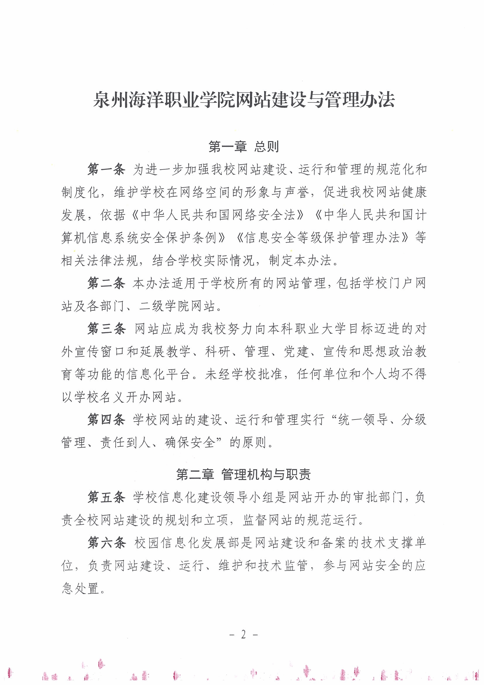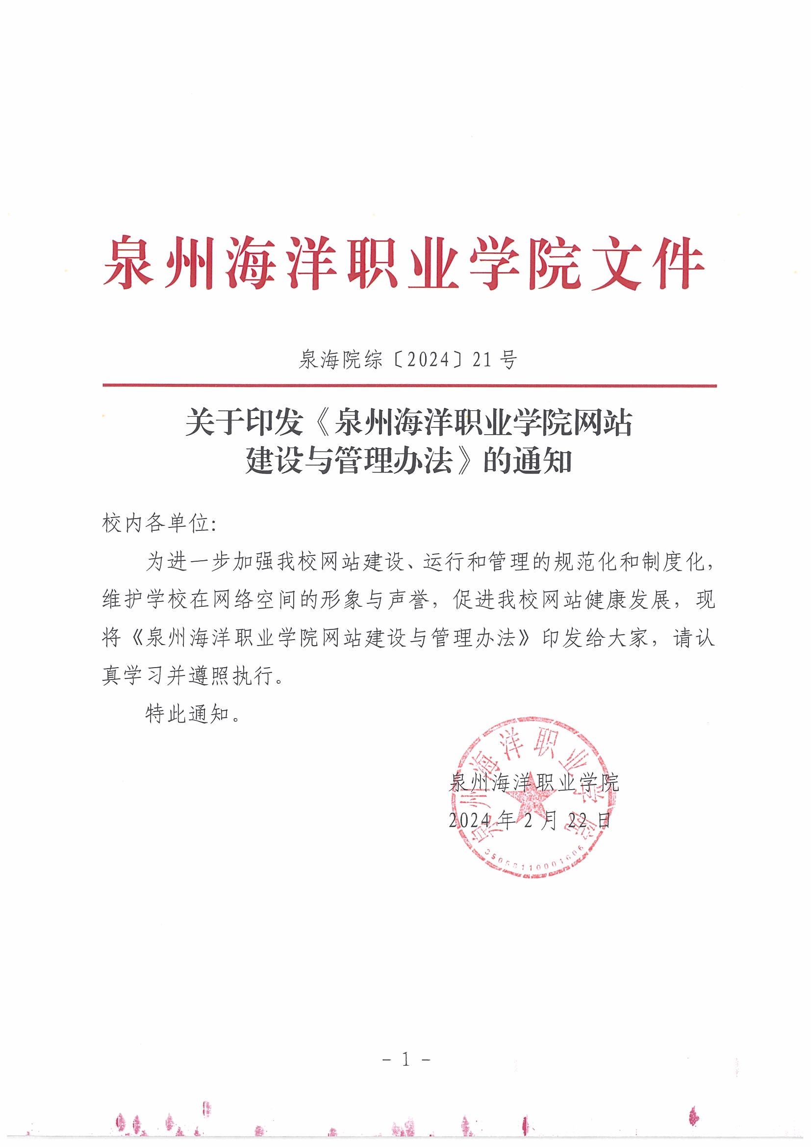 泉海院综〔2024〕21号 关于印发《泉州海洋职业学院网站建设与管理办法》的通知