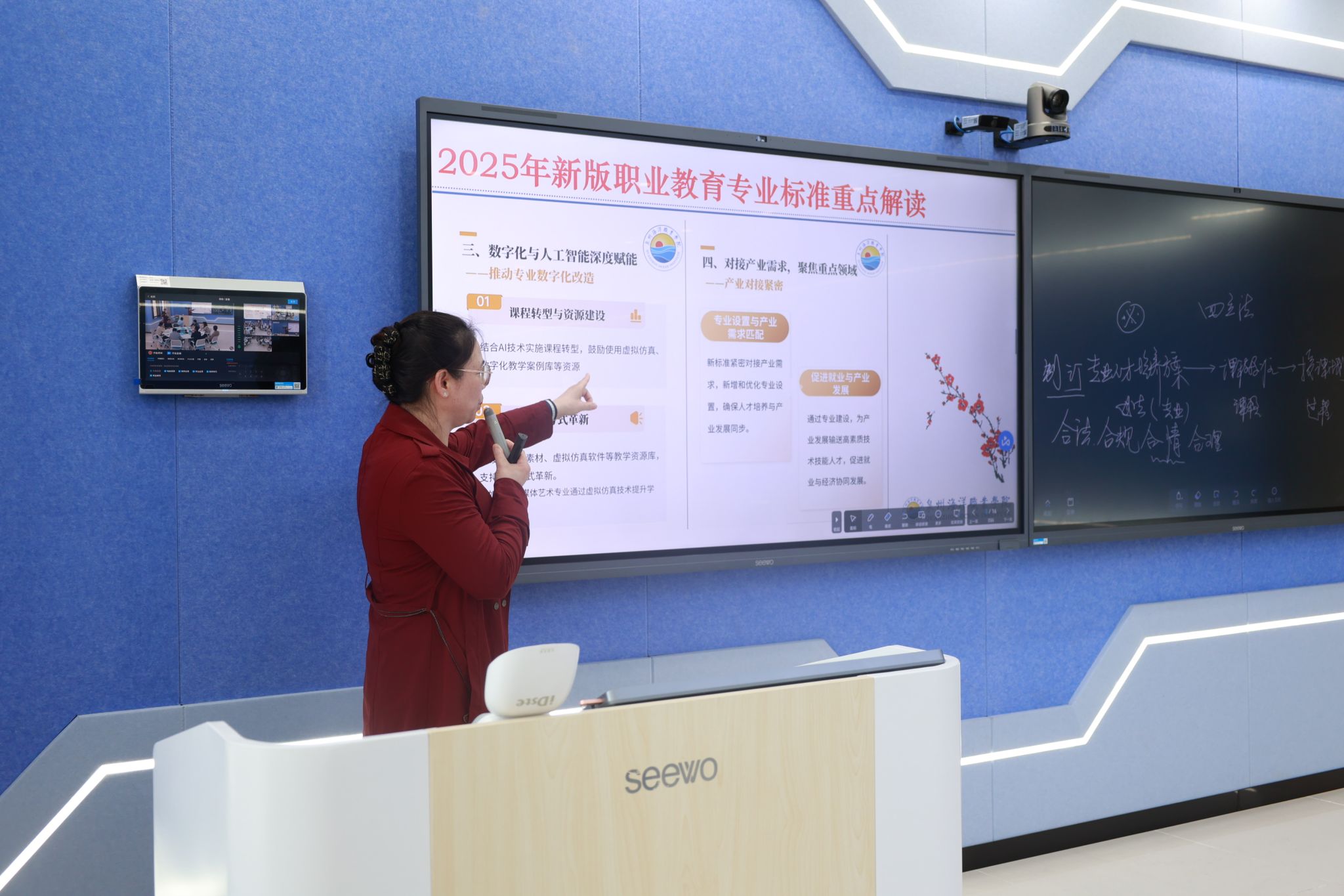 会上,教务处处长蔡小莲深入解读了2025年新版职业教育专业标准。她紧密联系教育政策前沿,精准剖析了标准的关键要素及重大调整,为参会人员指明了人才培养方案制(修)订的方向。蔡处长还详细说明了制(修)订流程,包括前期调研、方案起草、专家论证、修订完善等环节,并明确了操作规范,为后续工作提供了清晰的指引。她强调,专业人才培养方案要做到“合法、合规、合情、合理”,在遵循国家职业教育专业标准的前提下,突显出学校的特色。
