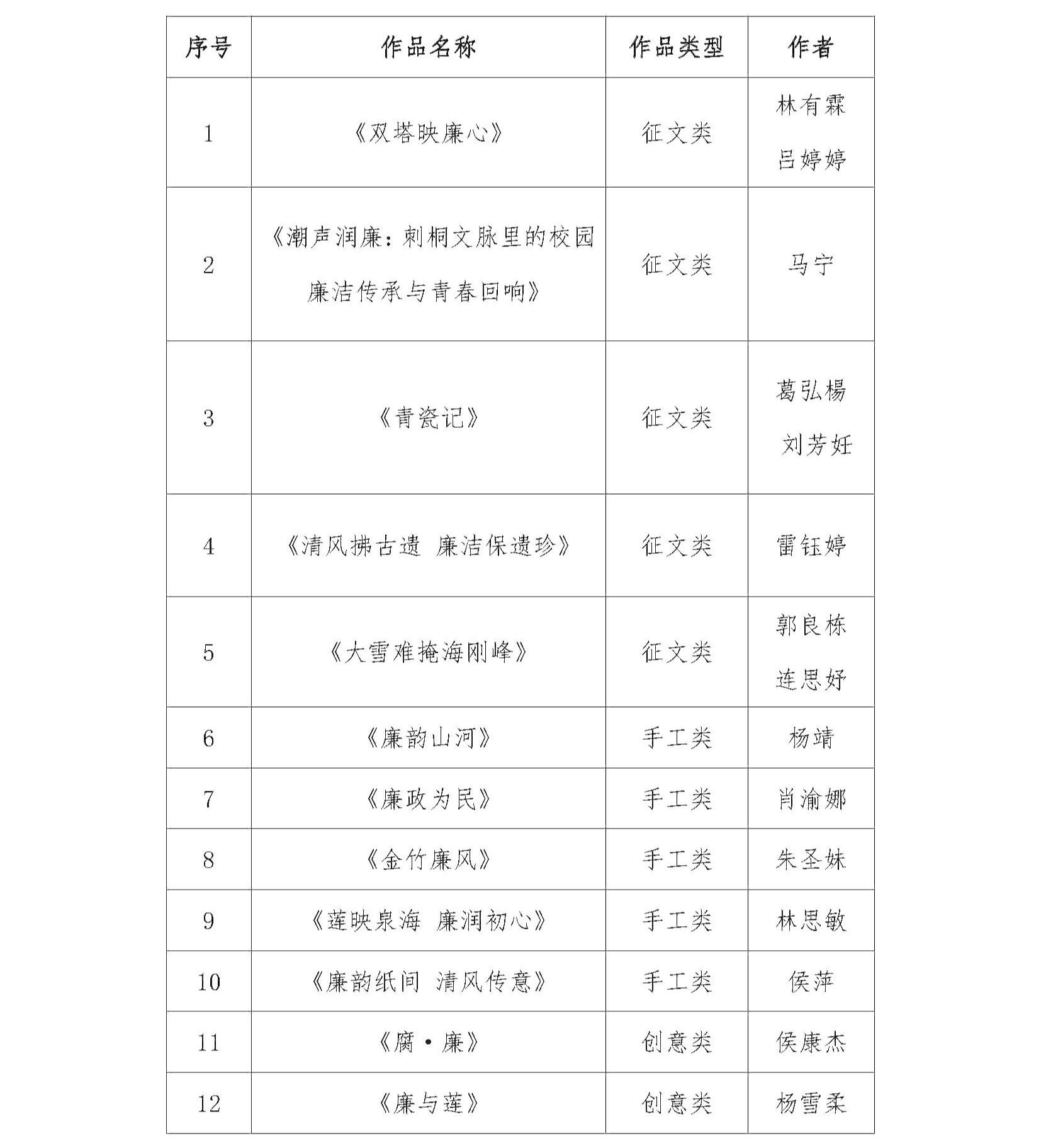 (新闻中心讯 纪检监察室供稿 党委宣传部报道)近期,省委教育工委、省纪委监委联合主办的第二届福建省校园廉洁文化周“廉洁福建·清清校园”文化艺术作品展在闽江师范高等专科学校举行。本届作品展汇集了全省34所高职院校的346件优秀作品,我校师生积极创作、踊跃申报,共有18件作品成功入选参展。