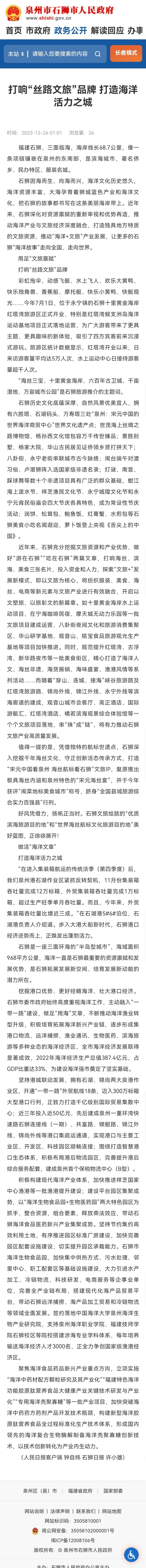 【泉州市石狮市人民政府】打响“丝路文旅”品牌 打造海洋活力之城